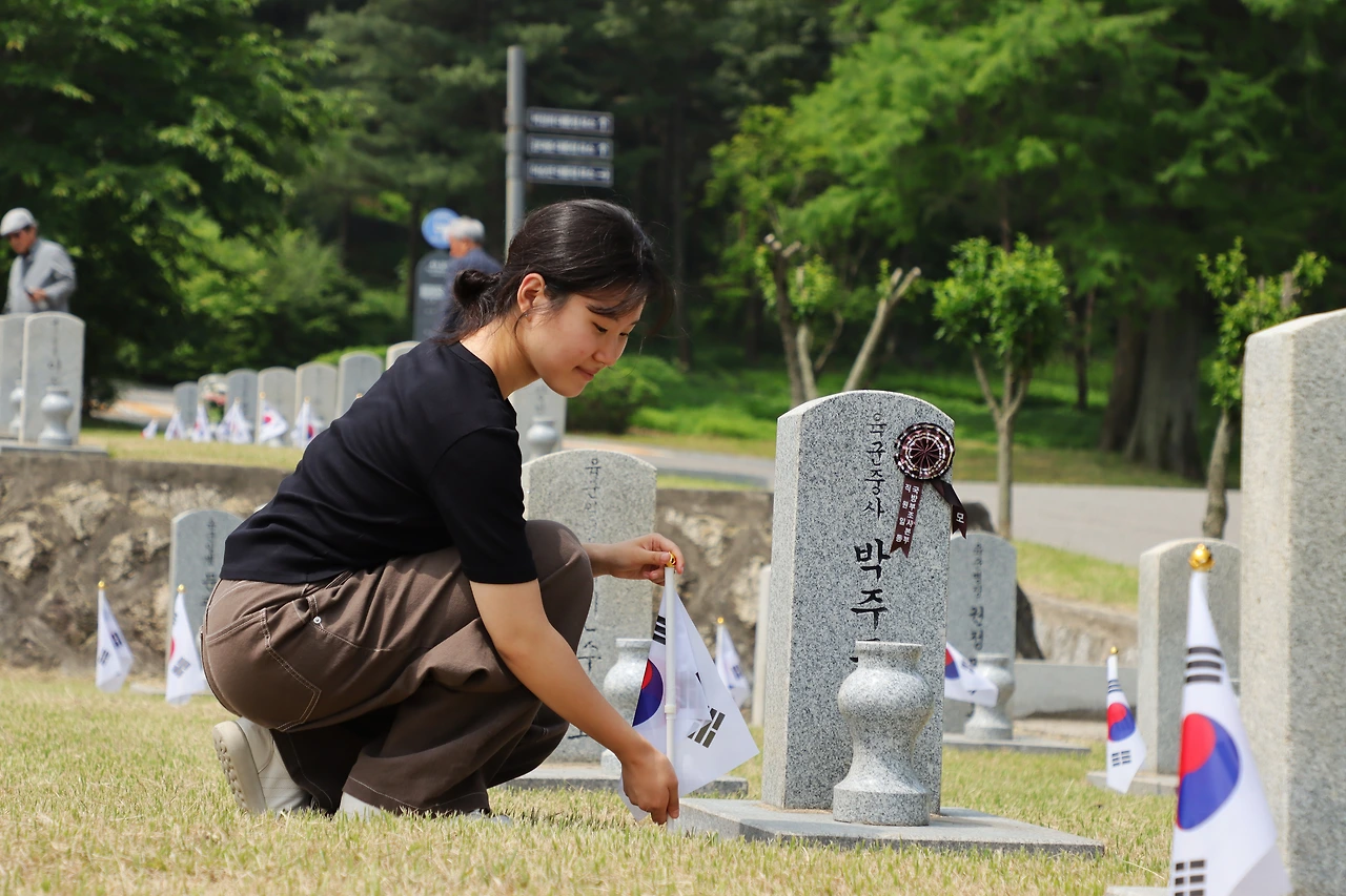 서울 국립현충원 제49묘역, 6‧25사변 때 평창지구에서 전사한 73명이 잠들어 있으며 동우회 회원들은 묘비에 쌓인 흙먼지를 닦고 묘미 앞에 가지런히 태극기를 꽂아드린다.