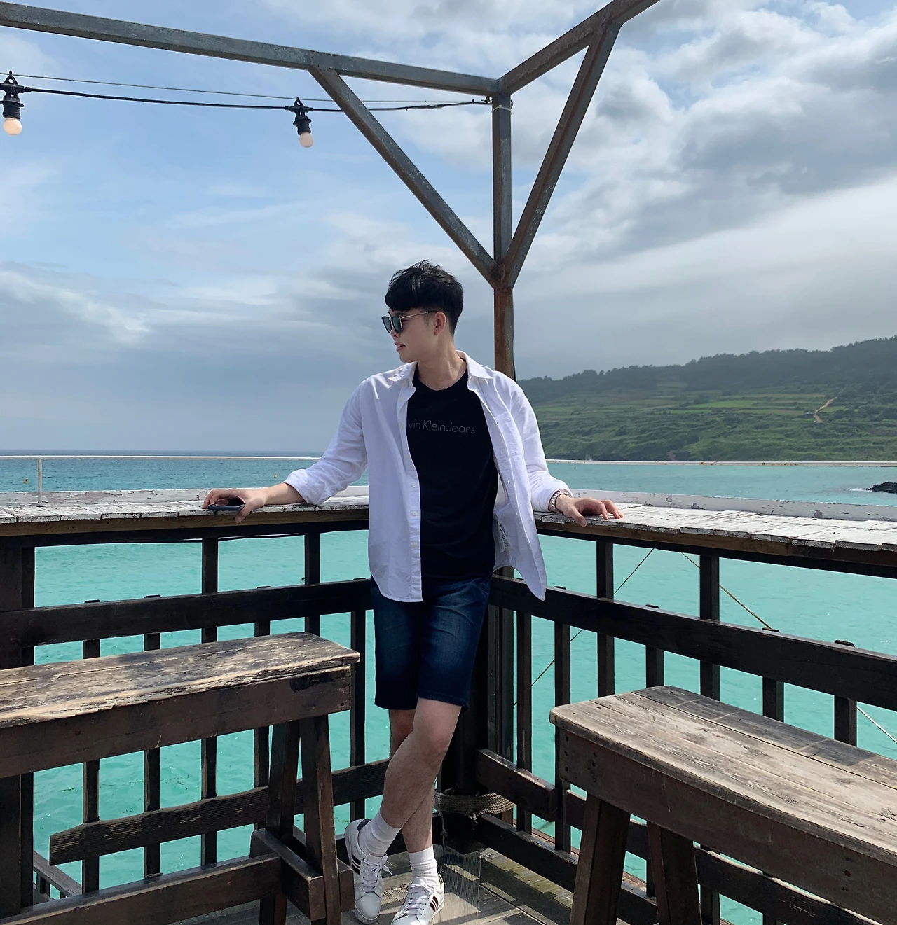 이곳 카페테라스에는 넓은 시야의 에메랄드 빛 바다를 한눈에 살펴볼 수 있다. 바다 위, 빛나는 햇살은 따스한 온기를 나에게까지 뿜어내는 듯하다. 8월이라는 무더위 기간에도, 이곳 제주도 해안에는 선선하고 기분 좋은 바닷바람이 내 몸과 마음을 시원하게 적신다.
