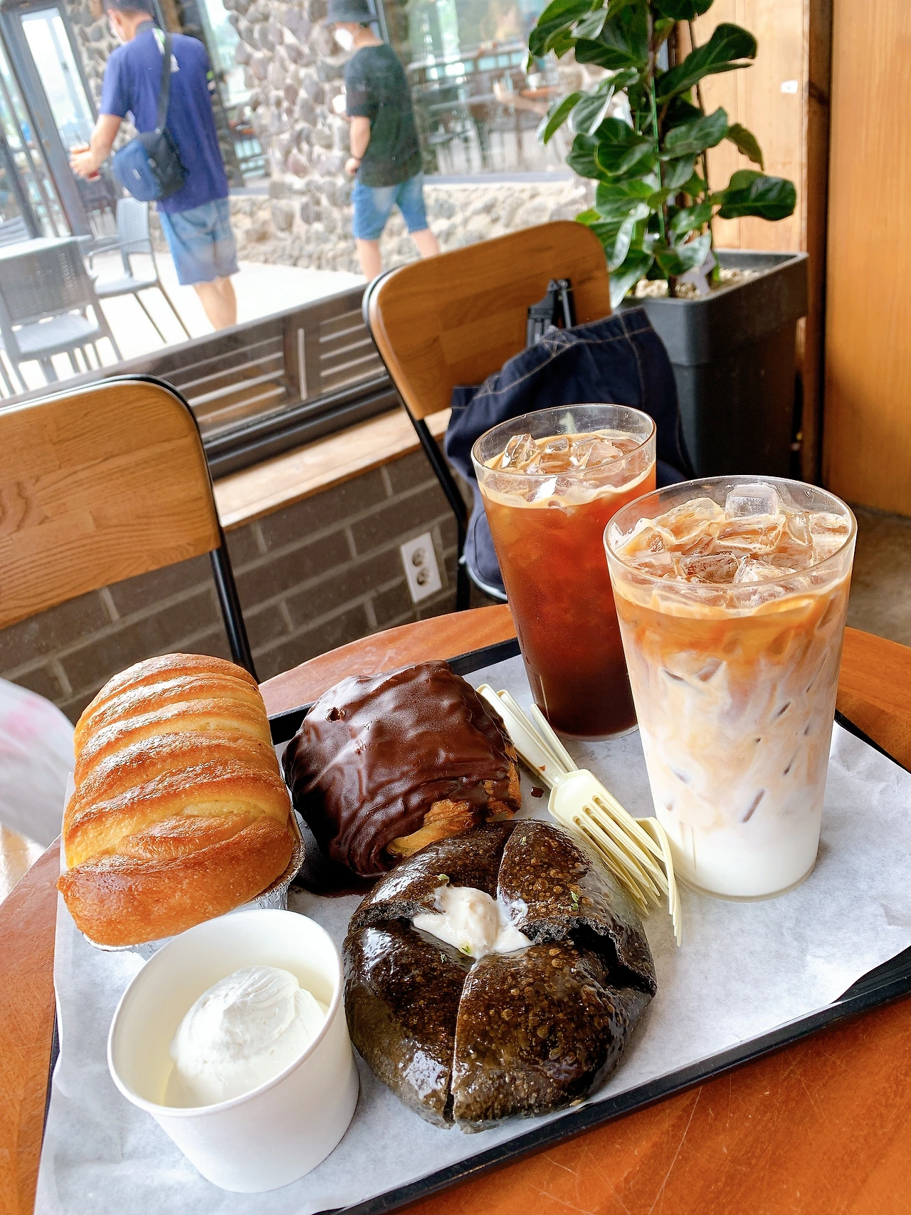 수많은 빵들 중에 '제주 돌'과 '브리오슈난테르'라는 빵 이렇게 두 가지 종류의 빵을 시켰다.