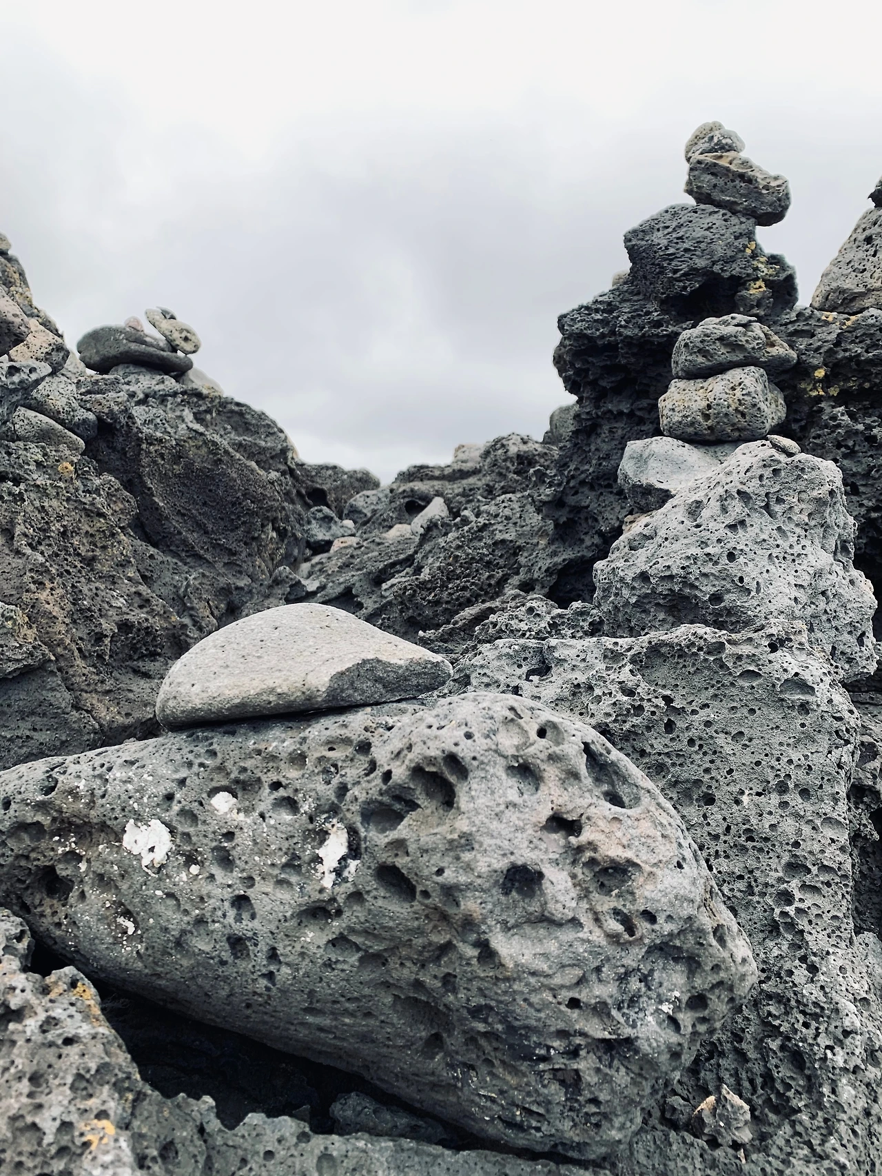 구멍이 송송 뚫려 있는 이 크고 작은 현무암들이 모여, '탑'이라는 하나의 예술행위를 이끌어낸다.