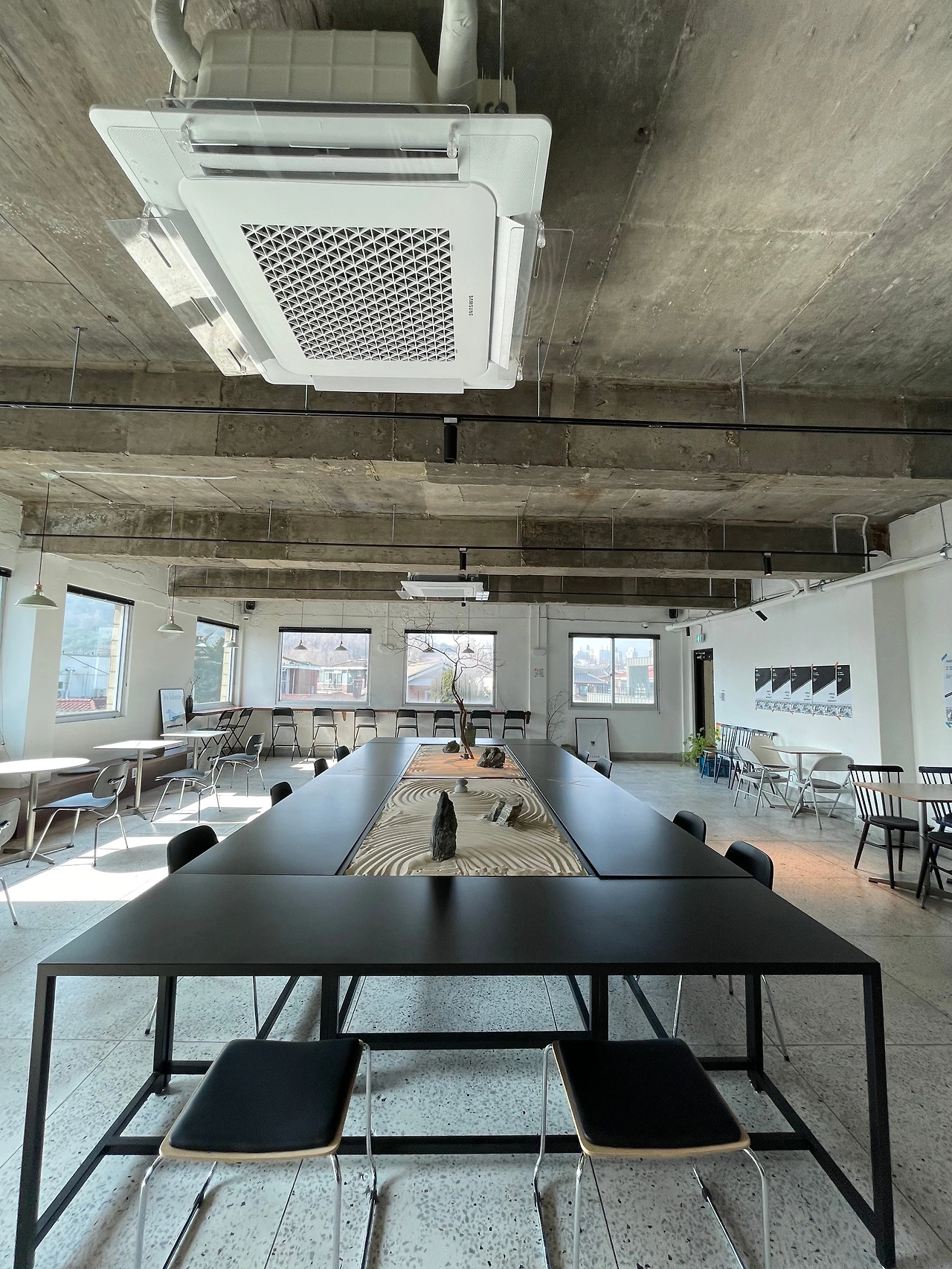 이 '균형'의 아름다움은 내가 제일 좋아하는 시각적 편안함이다. 천장 역시 직각, 창문도 직각, 전체적으로 긴 직사각형 형태의 아름다운 실내공간의 디자인. 내 마음에 쏙 든 신상 카페 '스퀘어드'