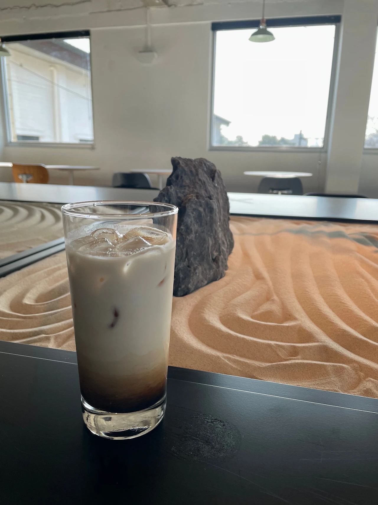 오늘은 쓴 맛이 매력적인 아메리카노보다, 이곳 스퀘어드의 사막 같은 느낌을 더욱 선명하게 느끼기 위해서 일부러 달달한 '바닐라 라떼'를 주문했다. 맛도 예술, 비주얼은 물론.