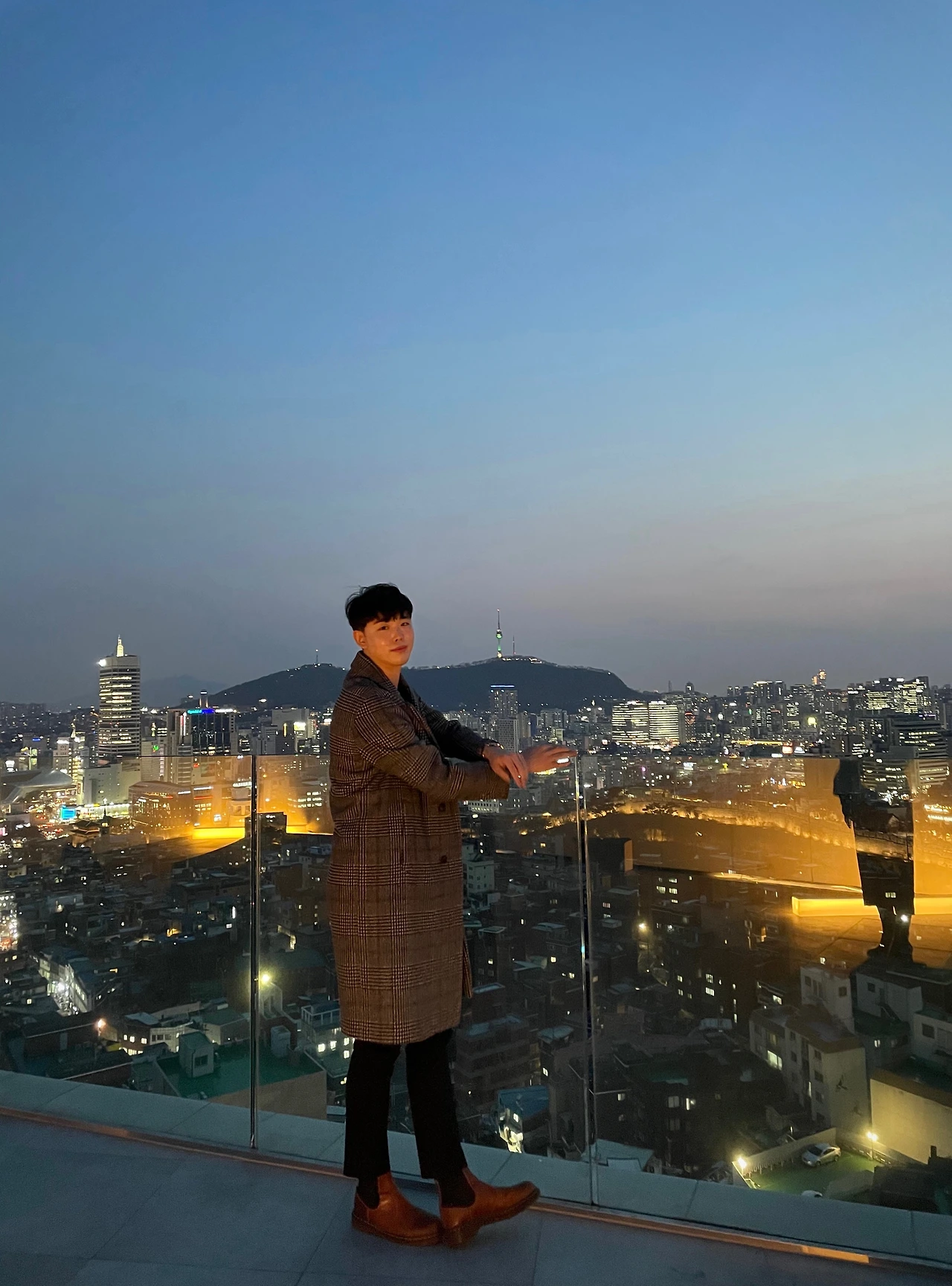 내 가슴 정도밖에 안 되는 낮은 유리창이지만, 무서움을 이기고, 창 끝에서 서울 시내의 아름다움을 느끼고자 한다.
