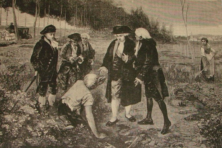 약사 파르망티에가 루이16세에게 감자를 보여주고 있다.