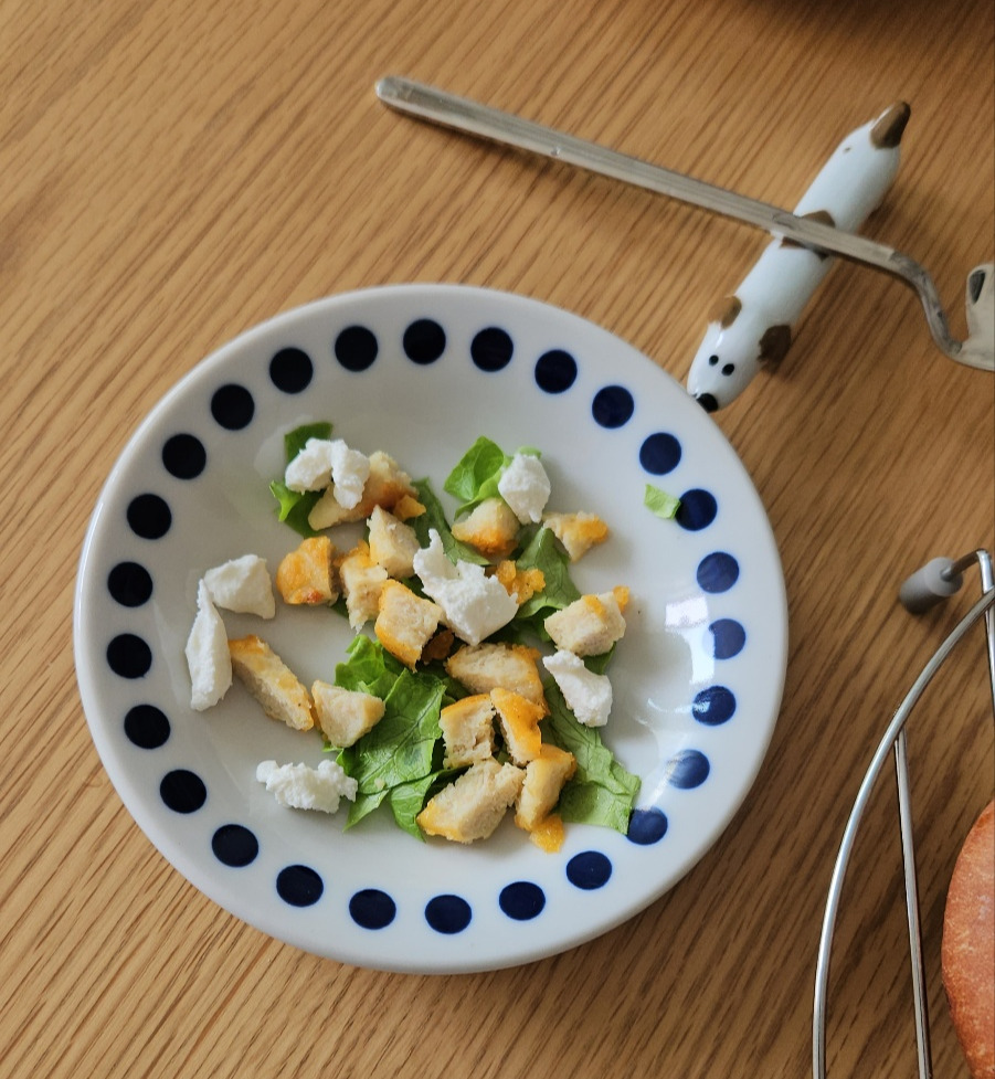 한참 누워 있다가 또 금세 배가 고파진 언니는 뭔가를 만들기 시작했어. 요즘엔 자기가 먹는 걸 비슷하게 해서 내 것까지 만들어 주더라. 이렇게 작고 귀여운 사이즈로.