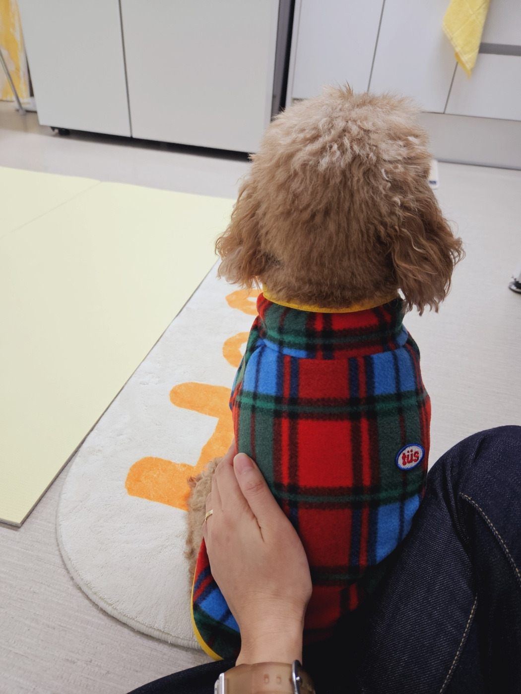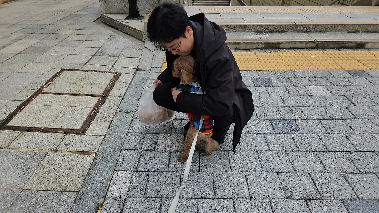 이번주에 새로 장만한 옷 이래옷을 입고는 밖으로 나갔어. 볼 일을 본 다음엔 집에 바로 가고 싶은데, 언니가 나를 어디론가 데려가는 거야. 날 어디 버리고 오려고! 불안한 마음에 땅에 착 달라붙는 포복 자세를 취했지. 그랬더니 언니가 갑자기 어딘가를 향해 "오빠!"라고 소리치는 거야. 오빠? 오빠가 왔다고?? 내 몸이 변신 로봇처럼 자동 반사적으로 등을 세우고 토끼처럼 귀를 날리면서 뛰기 시작했... 는데 오빠는 보이지 않았어. 뭐야.. 날 속인 거야?