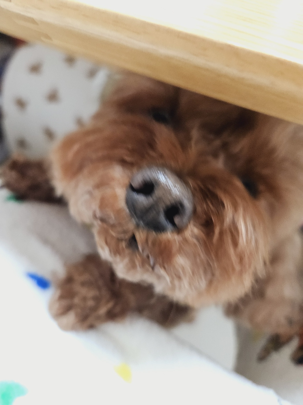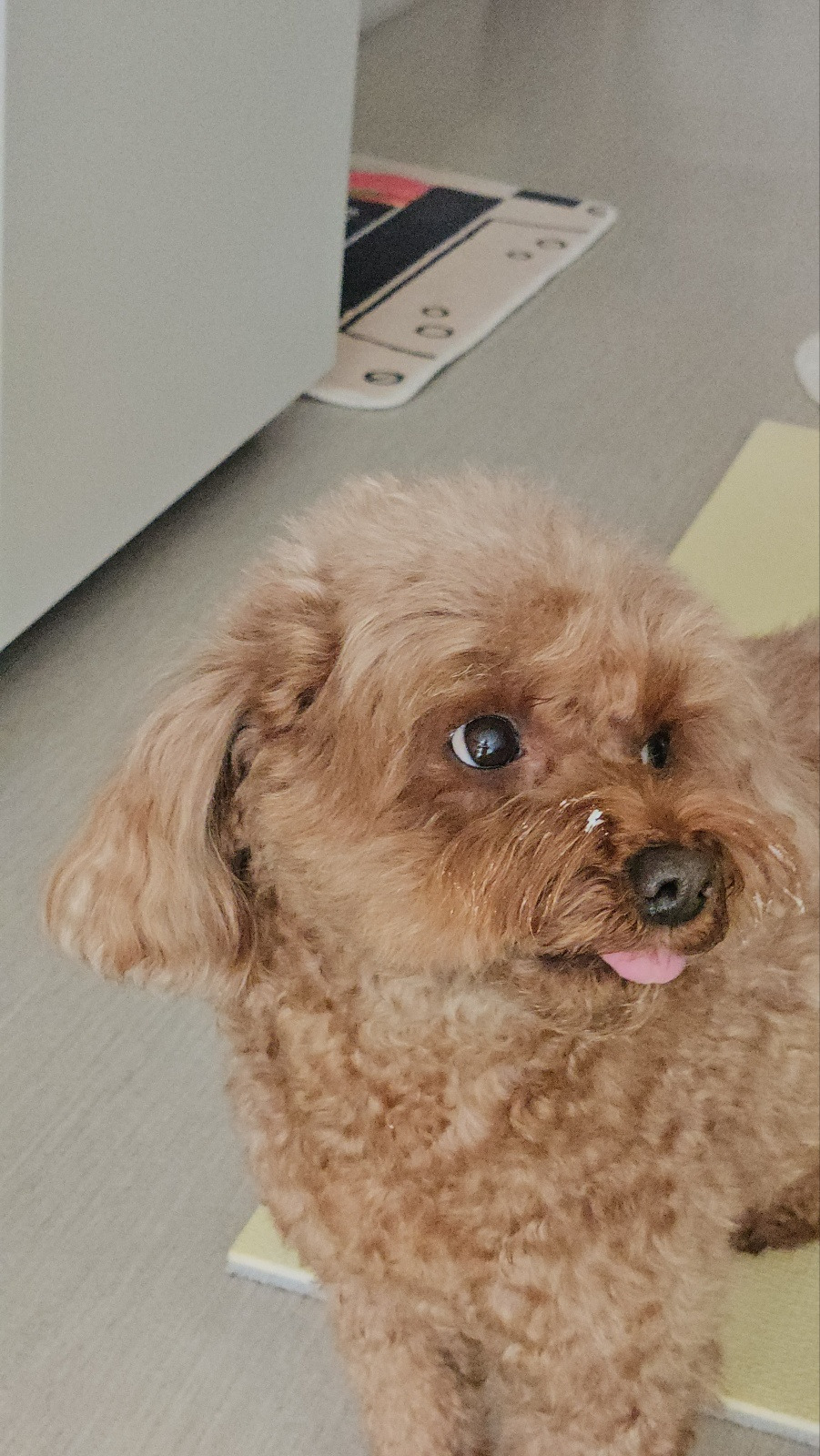 조용하던 차에 언니가 냉장고 문을 열었어. 나에게 뭔가를 주려는 건가? 앗, 저 하얗고 말캉한 물체는 리코타 치즈! 맛있는 건 못 참는데 치즈는 더 못 참지. 빨리 줘 빨리 줘..!! 언니는 내 몫을 떼어서 여러 번에 나눠 주더니 제일 큰 뭉터기를 자기 입으로 넣었어. 나는 요만~큼 자기는 이마아아안~~~ 큼. 나 조금 화나려고 해.