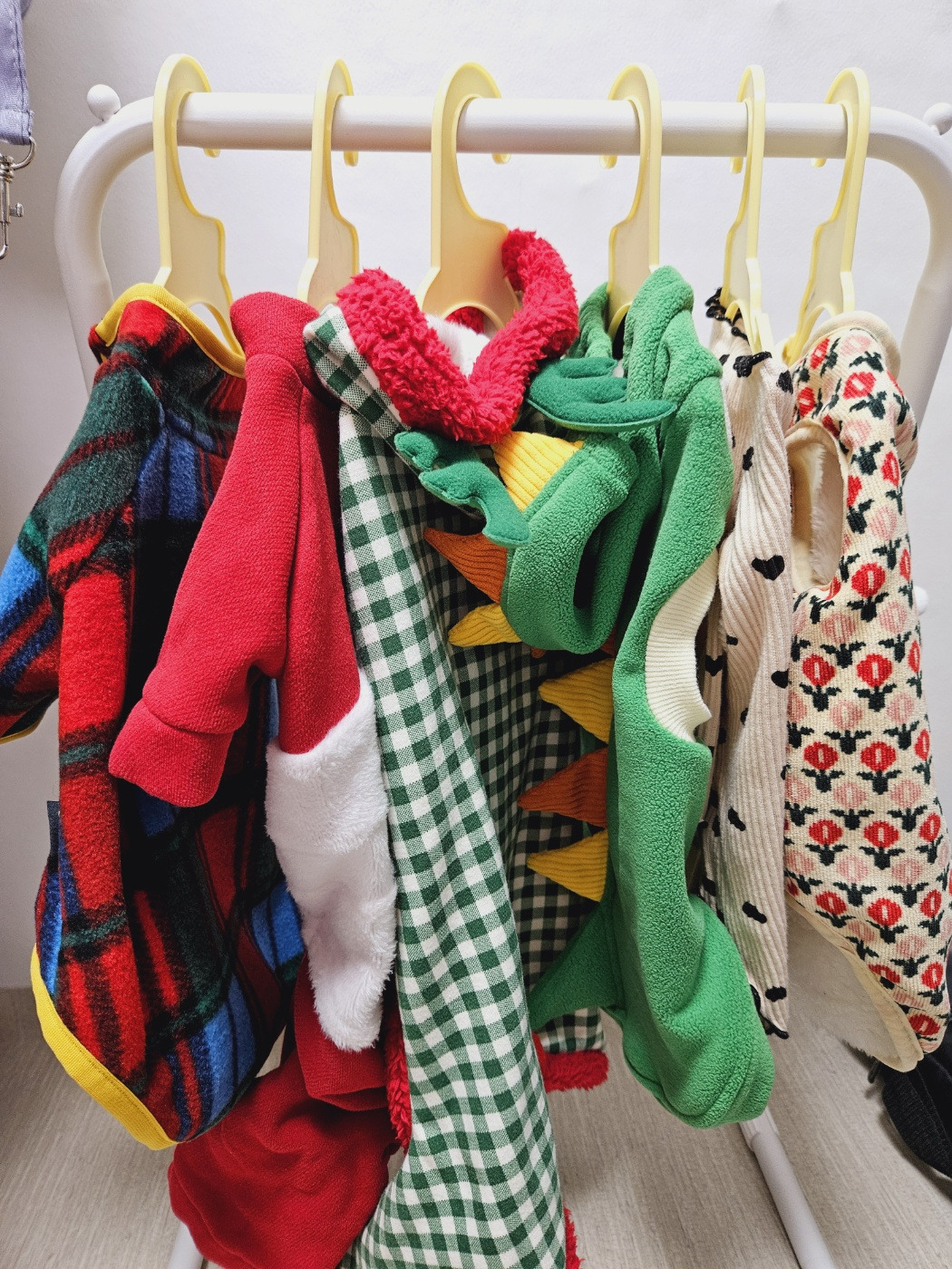 나는 밖에서 똥 싸는 강아지라서 언니랑 오빠가 나를 자주 데리고 나가. 내가 언제 마려운 지 알 수 없을 테니 자주 나가는 건 이해해. 근데 나는 아무리 그래도 밖에 있는 것보다 집이 좋단 말야, 오줌을 조금 참아야 한다고 해도 말이야. 언니가 옷을 입히기 시작하면 곧 밖에 나갈 거라는 뜻이지. 근데 오해는 말아줘. 이 옷들은 내 취향은 아니야. 너무 화려해서 눈이 아프다구. 저 중에 마음에 드는 것은 검은색 하트가 그려진 옷 밖에 없지.