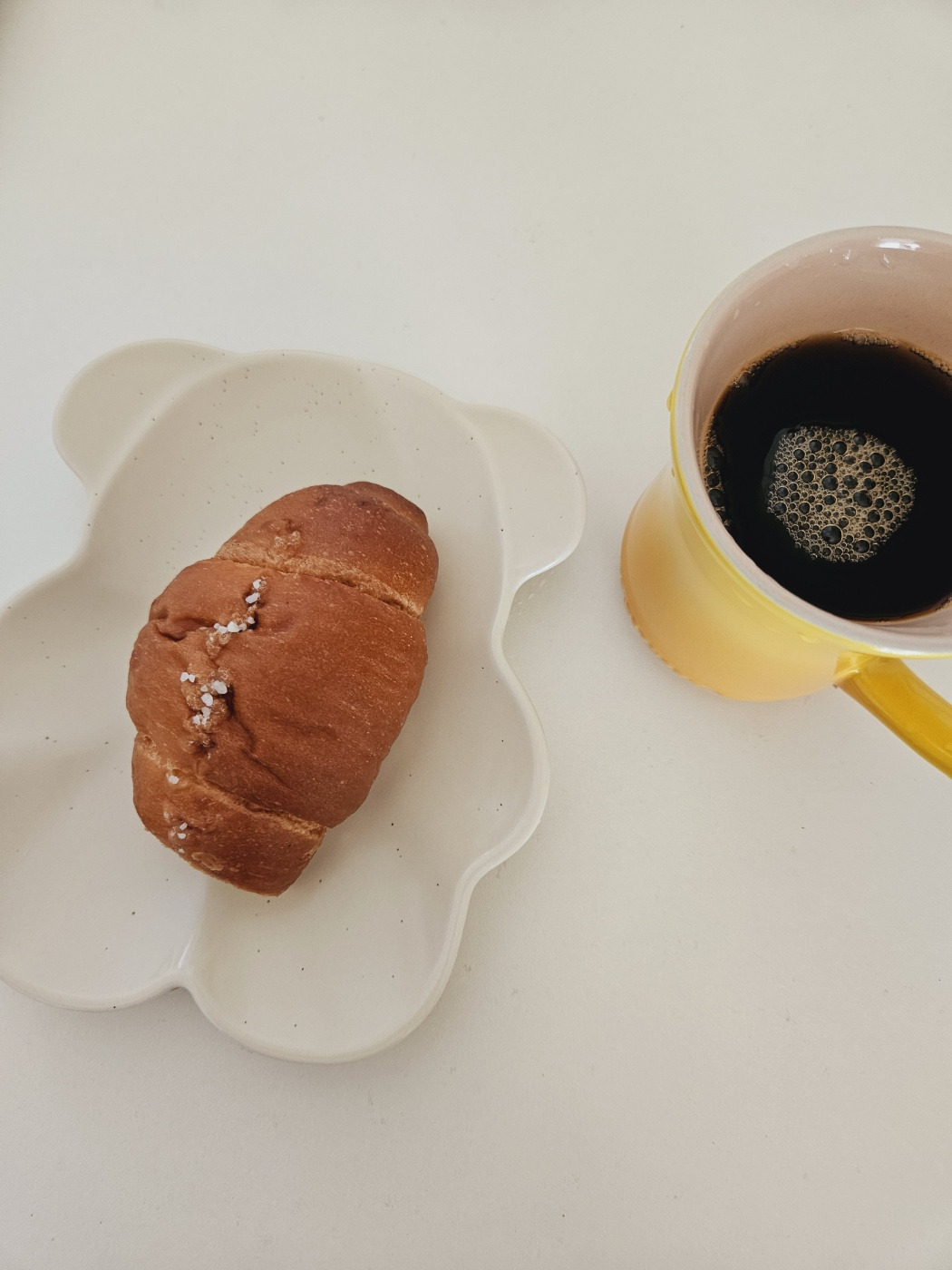 오늘의 행복: 따뜻한 커피와 갓 구운 소금빵