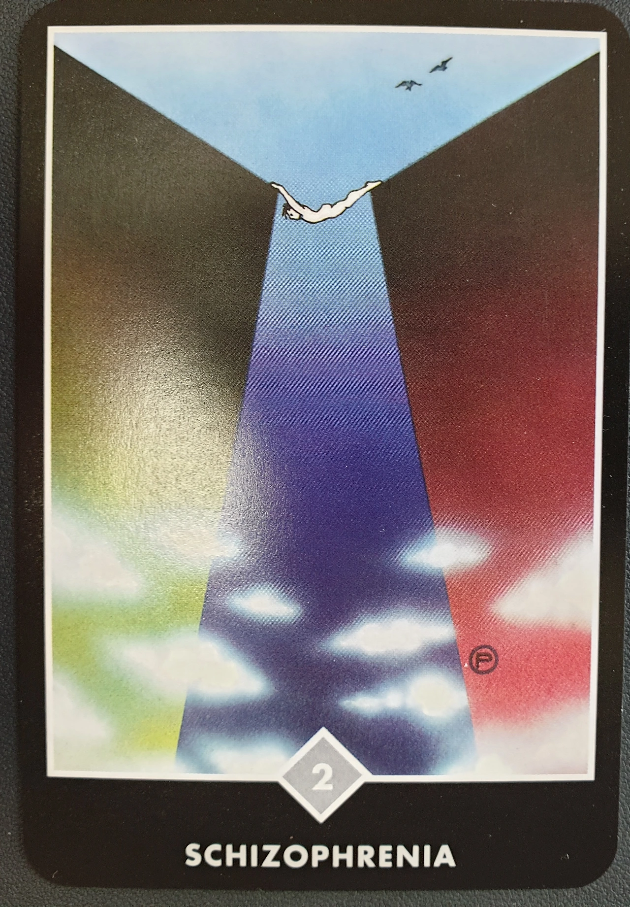 두 번째 카드는 팔과 다리로 양쪽의 절벽에 매달려있는 모습이다. 나는 항상 전체성을 느끼고 싶었다. 다른 말로 하면 늘 무언가 이상하고 미진한 느낌이 마음을 괴롭혔다. 어느 쪽으로도 온 마음으로 나아갈 수 없었다. 언제나 반대편으로 가려는 마음이 충만함을 갉아먹었기 때문이다. 첫째와 둘째 카드에 담긴 나의 모습은 정말이지 불쌍하고 안타깝다. 다른 어떤 일이 아니어도 자기 하나만으로도 이미 과부하가 걸리는 상태다.