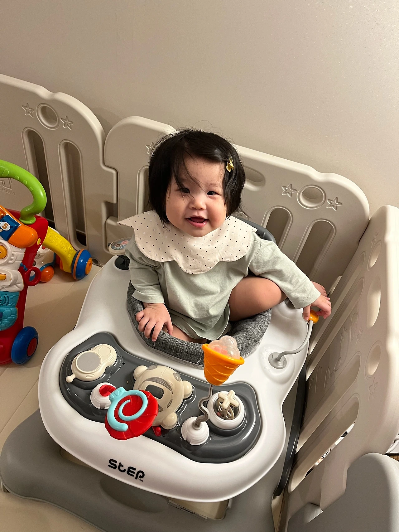 둘째가 인생 첫 보행기 시승식을 치른 날이었다. 보행기라기보다 약간 미래형 탈것처럼 생긴 그것을 둘째가 꺄르륵거리자, 첫째가 살짝 흥미를 보였다.