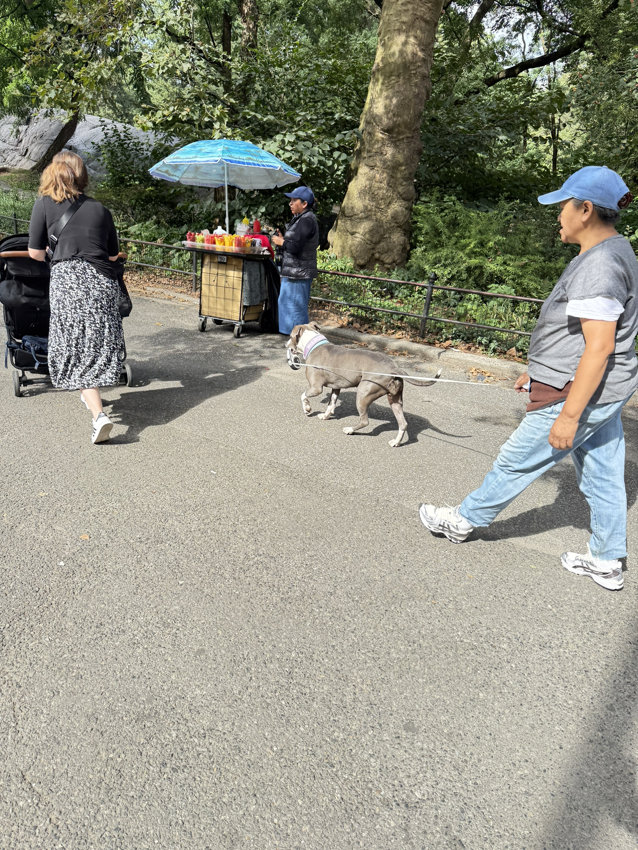 (자세히 보면 강아지와 사람 간의 목줄의 위치가 바뀌어있다. 인간들을 산책시켜 주는 책임감 있는 뉴욕 강아지들)