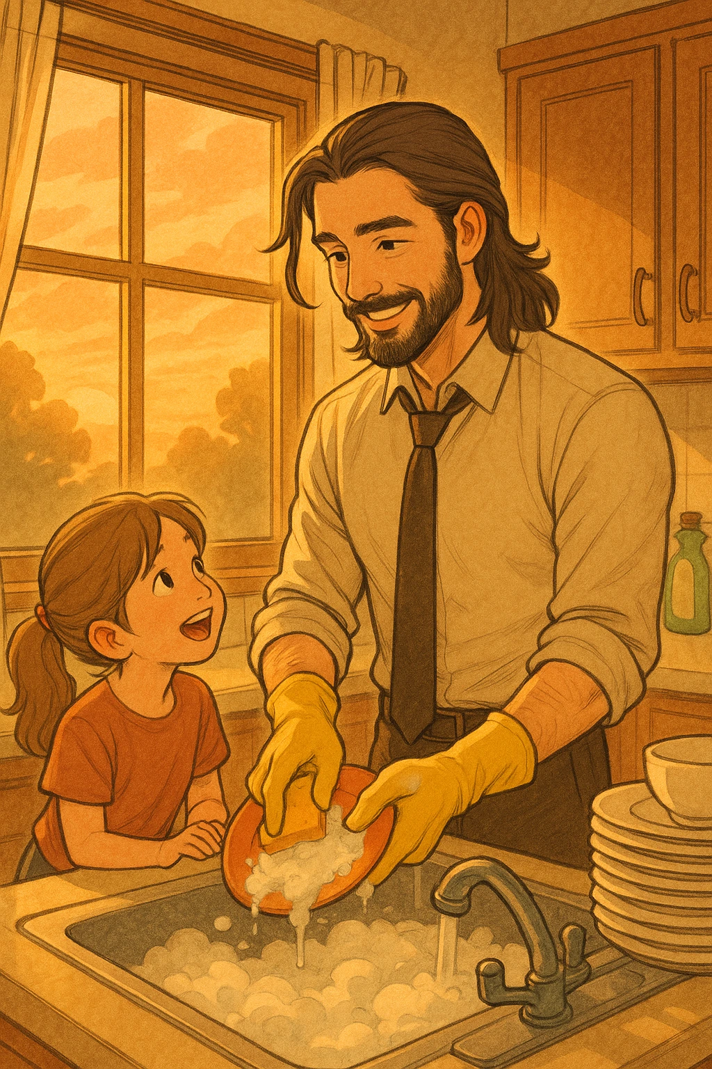 나는 대답 대신 그릇을 조용히 헹군다. (속으로는 ‘아빠, 사실 설거지 하는 거 안 좋아해’)를 외치지만)