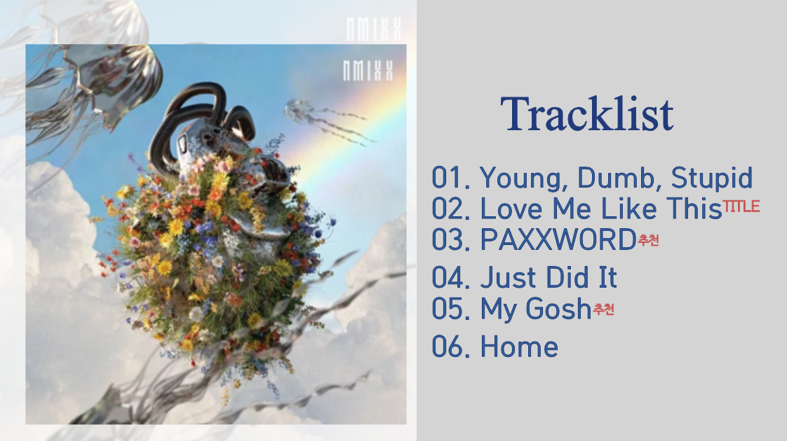 허나 타이틀에 대한 우려는 이어지는 수록곡들에서 해답을 찾을 수 있을 듯 하다. 이 앨범에서 특히 눈여겨볼 수록곡인 <PAXXWORD>가 이어지기 때문이다. 이 곡에서 엔믹스는 자신들이 가장 자신있어 하는 멤버 개개인의 음악적 역량을 한껏 뽐내는 것과 동시에 곡이 가지고 있는 무게를 최대한 줄여 이전 트랙에서 생긴 정서적 피로감을 모두 상쇄시키고 있다. 강한 에너지가 느껴지는 <Just Did It>이나 나긋나긋하면서 감미로운 분위기의 <MY GOSH>역시 마찬가지로 이 앨범과 차후 발매될 디스코그라피에 있어 청사진이 되어줄 것이다.