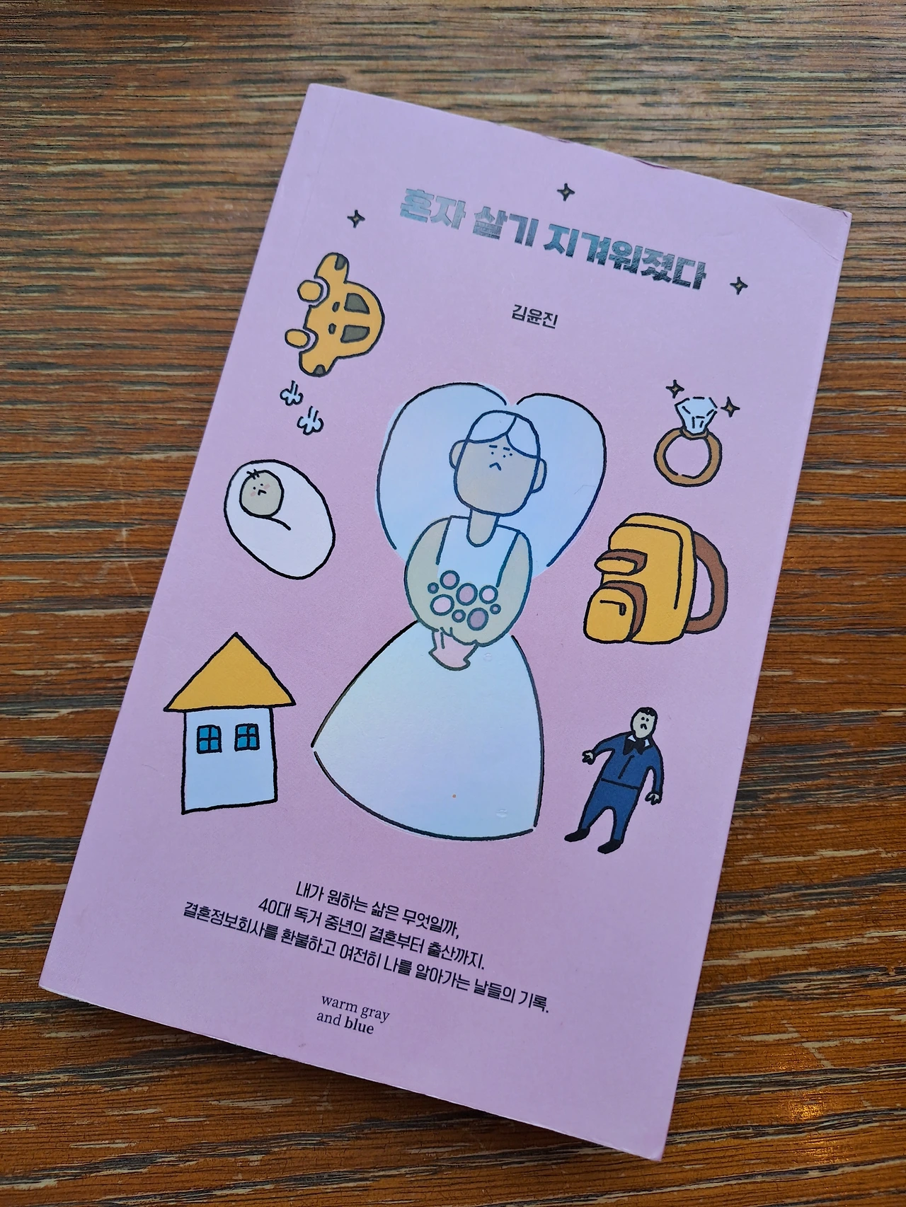 <혼자 살기 지겨워졌다>. 정말 강렬한 제목이 아닐 수 없다. 20대와 30대를 모두 바쁘게 보낸 저자 김윤진은 30대 후반부터 그전까지 흥미를 느끼던 것, 자신을 충족시켜주던 활동들이 더 이상 자신을 전처럼 채워주지 못한다는 것을 느낀다. 한국에서 짊어져야 했던 가정사나 의무감을 벗어던지고 작은 것에도 마냥 웃을 수 있던 해외 체류에도, 주말이나 평일 점심시간에 빠르게 듣고 오던 원데이 클래스도... 그것들이 주는 의외성이나 기대감 보다도 혼자 있는 집 안에서의 적막이 더 크게 느껴질 때 저자는 결혼정보회사에 등록하기로 마음 먹는다.