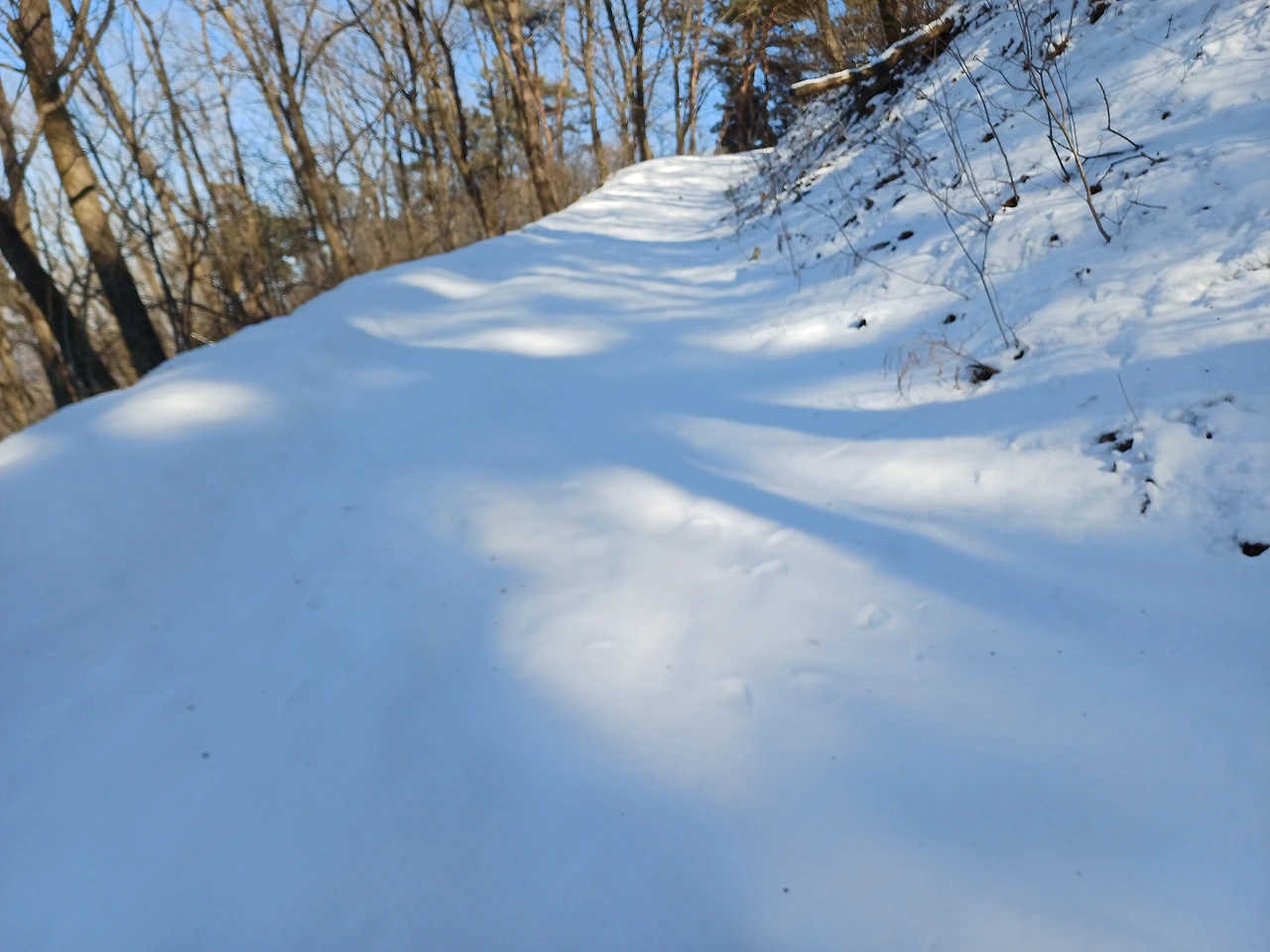예쁜 흔적을 남기고 싶어 팔자걸음 대신 일자걸음으로 조심조심 걸어본다. 하지만 이내 뒤돌아보면, 노력에도 불구하고 눈 위에는 영락없는 팔자걸음이 새겨져 있다. 같은 산을 오르면서도 계절과 날씨에 따라 기분과 생각이 달라지는 것은, 비단 나의 변덕스러운 마음 때문만은 아닐 것이다.