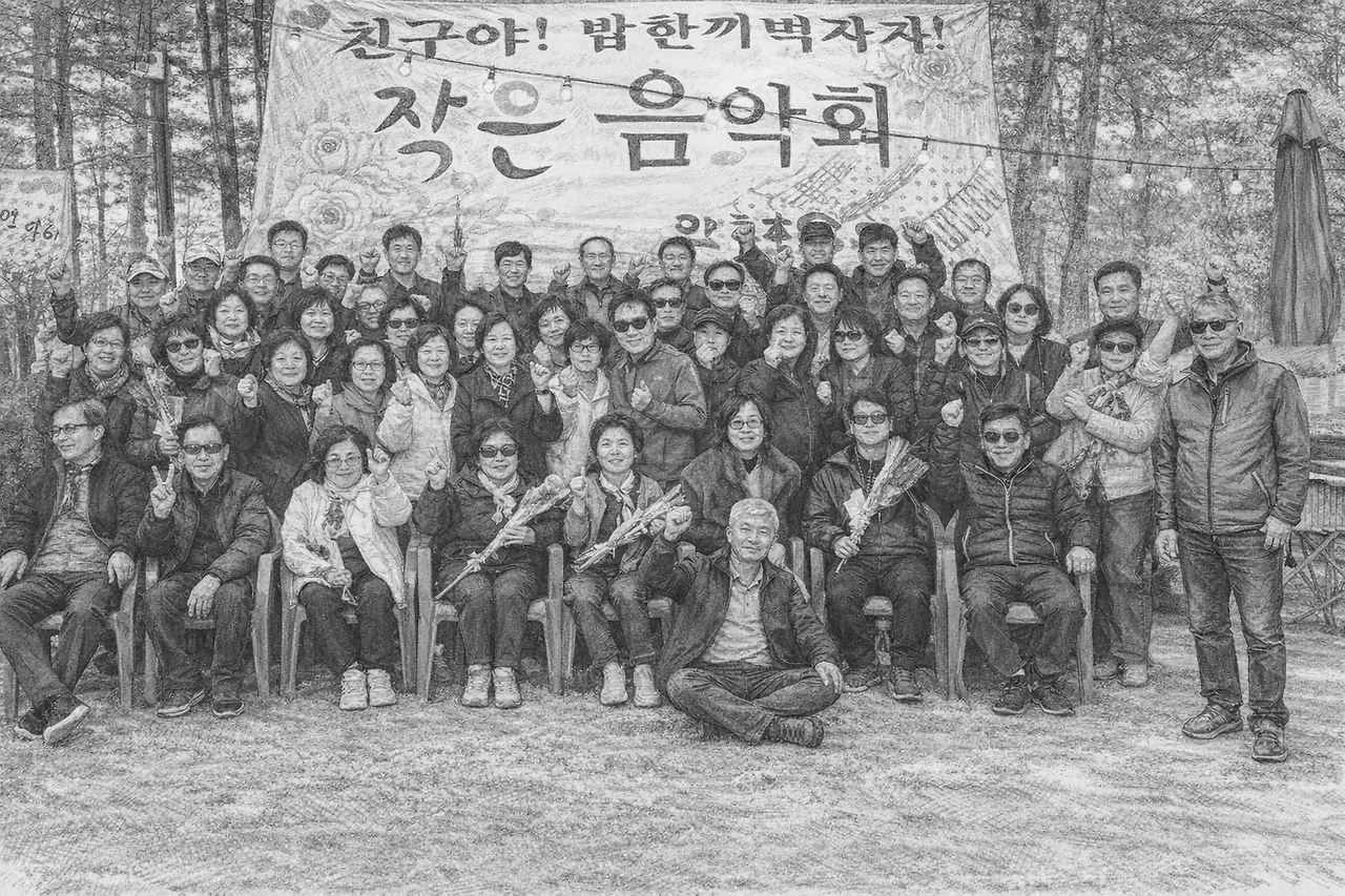 허공으로 흩어지는 목소리에 모두가 고개를 숙였다. 이어지는 순서는 동창들이 직접 준비한 작은 음악회 ‘친구야, 밥 한 끼 먹자’였다. 남학생이 왕년에 좋아했던 여학생에게 장미꽃 한 송이를 전달하는 이벤트가 열리자, 광장은 박수 소리와 환호성으로 들썩였다. 색소폰과 아코디언 연주가 잔디밭에 흐르고, 트로트 경연대회 못지않은 노래자랑이 이어지자 우리 모두는 70대의 나이를 잊고 소년, 소녀로 돌아갔다. 행사의 절정은 시 낭송과 교가 합창이었다. 36회 동창을 위해 지어진 시가 낭송될 때, 우리는 57년 전의 그 초롱초롱한 눈망울을 가진 아이들이 되어 있었다.