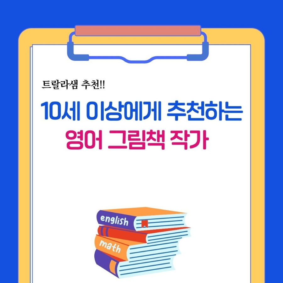 10세 이상에게 추천하는 영어 그림책 작가 5명을 참고하여 리더스북, 챕터북, 소설을 읽는 청소년들도 영어그림책을 수준에 맞게 볼 수 있기를 바랍니다~~~