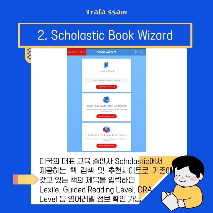 미국의 대표 교육 출판사 Scholastic에서 제공하는 책 검색 및 추천 사이트이다.