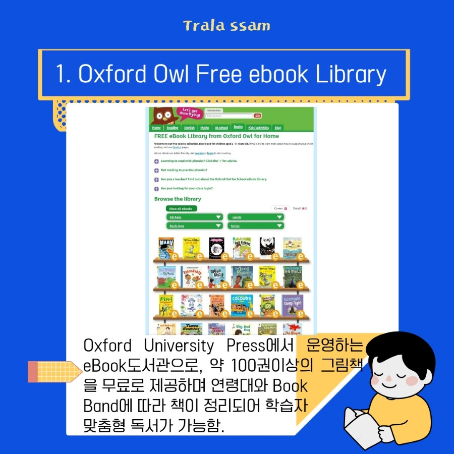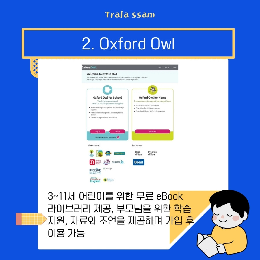 Oxford Owl은 영국식 커리큘럼에 맞춰진 영어 독서 프로그램을 제공하여, 영어를 체계적으로 학습하고 싶은 어린이들에게 추천하고 싶은 사이트이다.