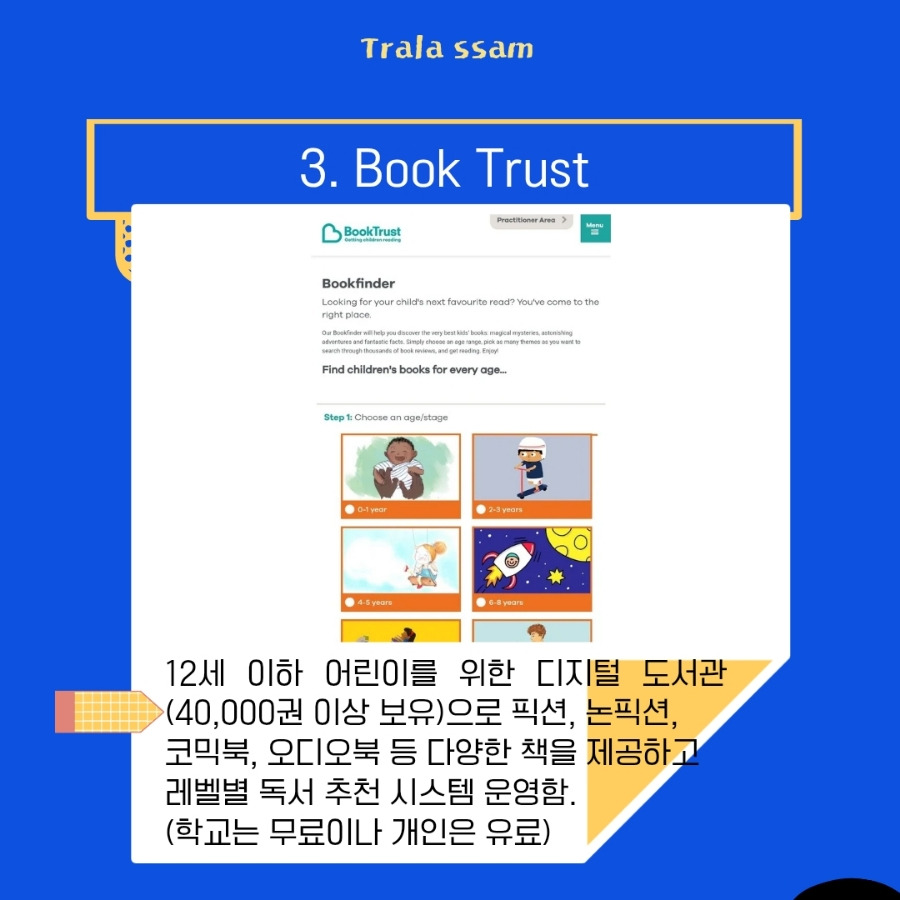 영국 정부가 지원하는 독서문화 재단에서 운영하며, 연령과 관심사에 맞는 책을 추천해 주는 사이트이다.