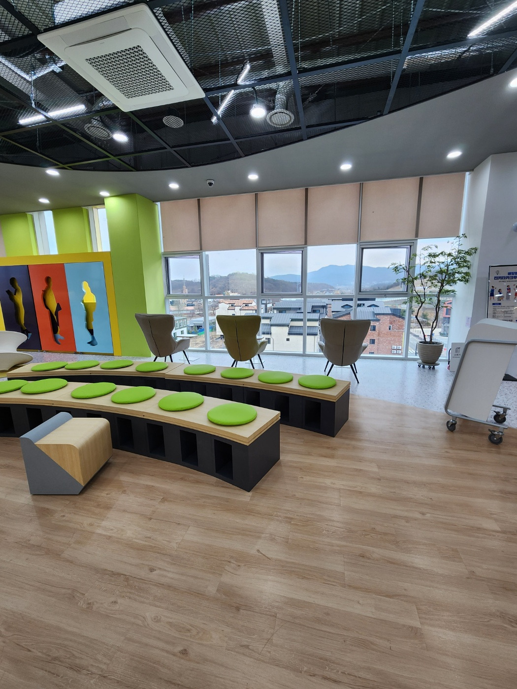 결혼 후 태어나서 처음으로 와본 아산에서도 나는 도서관을 자주 방문했다. 당시 집에서 10분 거리에 배방도서관이 있었는데 이 곳 역시 시설이 낙후했었다.(아래 사진은 리모델링을 하고 난 이후의 사진이다. 내가 처음 이 곳에 갔을때는 더 낡은 곳이였다.) 그래도 집 근처에 도서관이 있음에 감사했다. 아이를 낳고 나서 아이와 함께 도서관을 찾았지만 그때까지만 해도 도서관에서는 조용히 해야 한다는 인식이 강했었다. 어린이 자료실임에도 불구하고 아이에게 편하게 책 한권 읽어주기가 힘들었다. 아이가 조금만 소리를 내도 사서 선생님은 다가와서 조용히 해달라고 요청하셨었다. 우리에게 도서관은 책 빌릴때만 잠시 가는 곳이 되어버렸다.