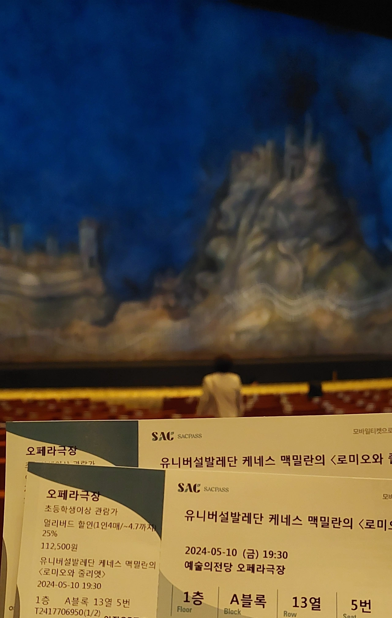 8년만에 돌아온 유니버설 발레단의 <로미오와 줄리엣, 케네스 맥밀란 버전>을 발레 애호가로서 다 성장한 딸한테도 보여주고 싶었고, 개인적으로 서희리나도 보고 싶어서 예매했었어요.