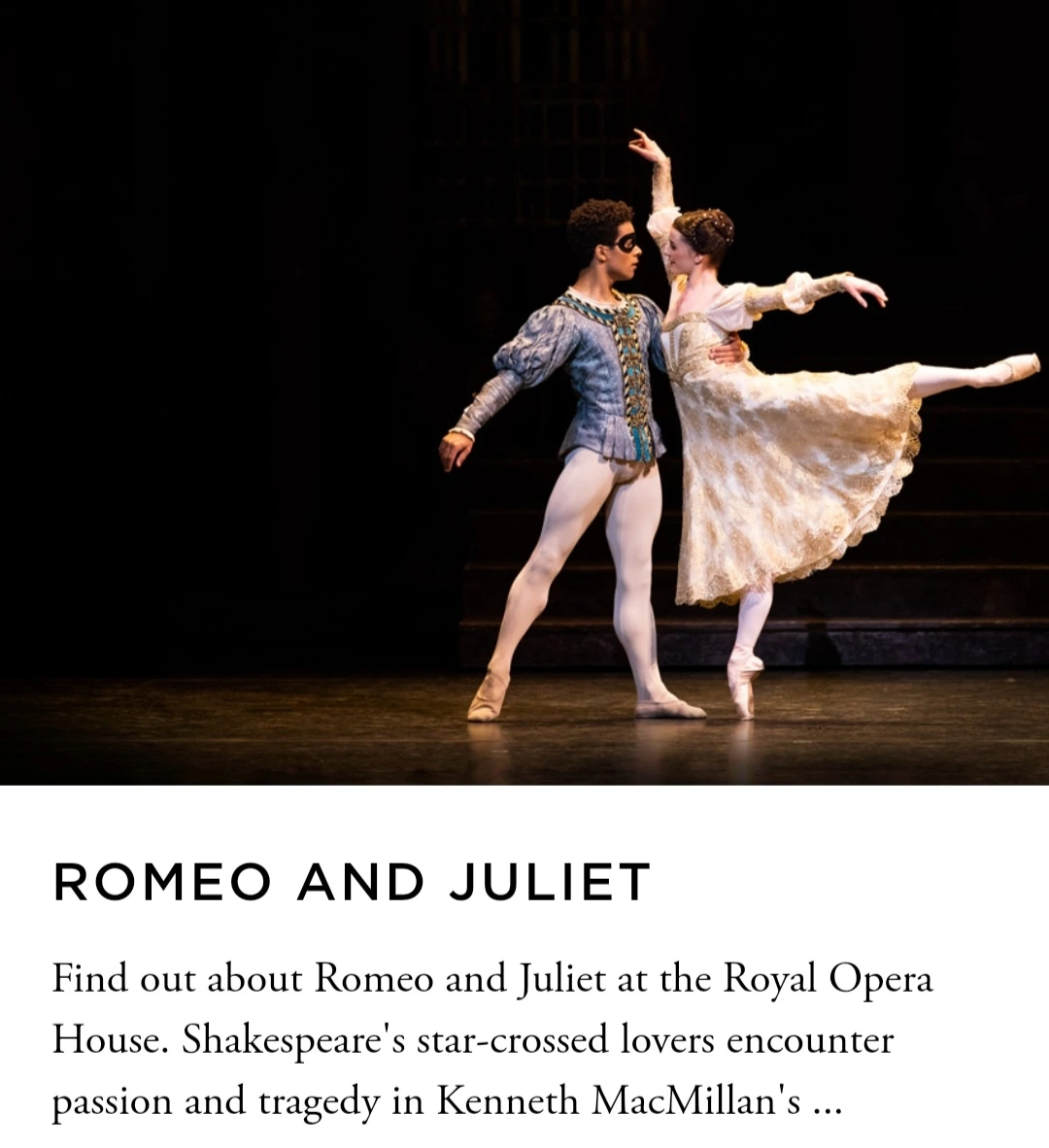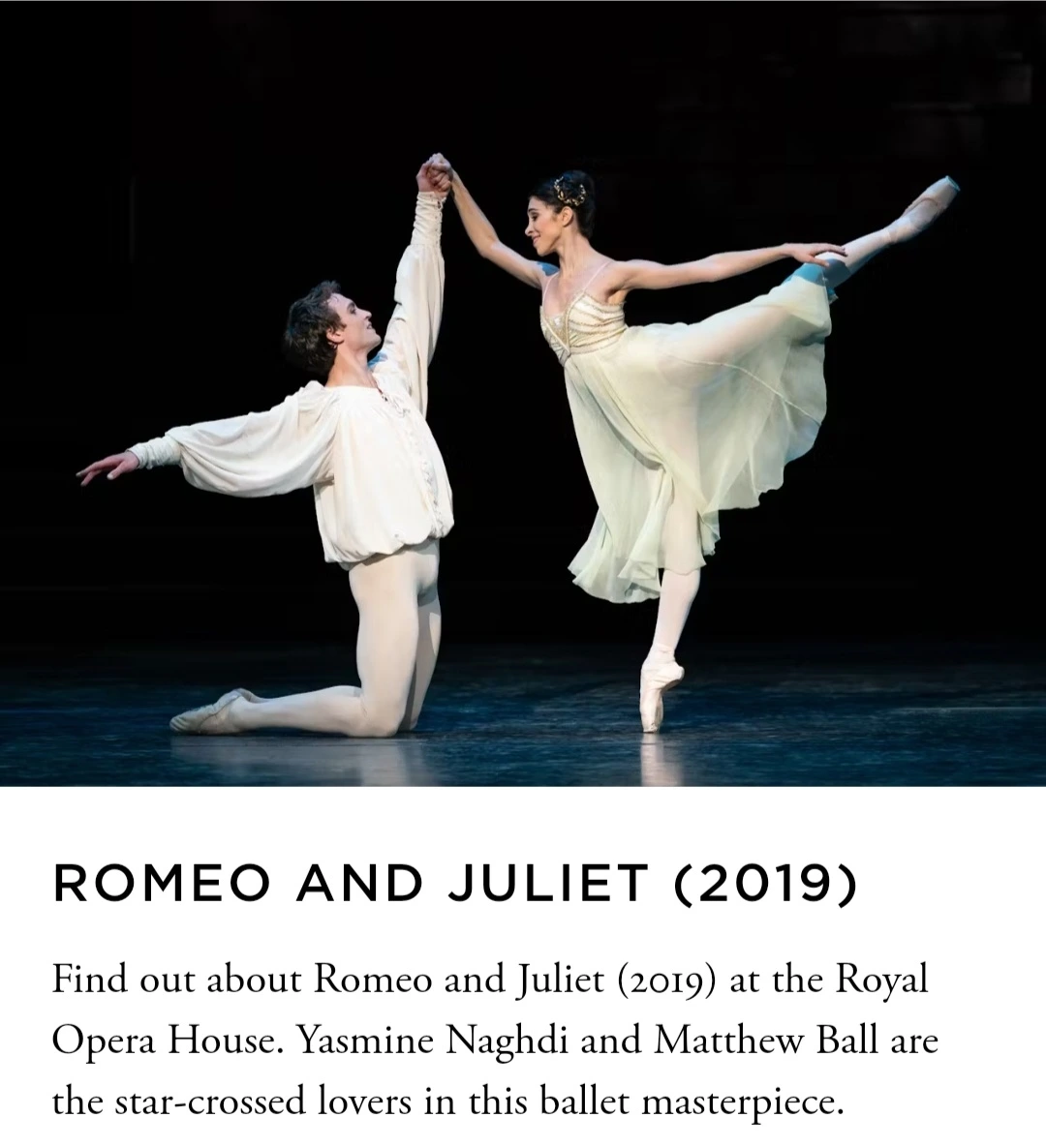 저는 미리 케네스 맥밀란의 버전으로는 로열오페라하우스 홈페이지에서 매튜 볼&야스민 나가디, 마르첼리노 샴베&안나 로즈 오 설리번의 로열발레단의 공연 영상을 감상했고, 유튜브에서 로열발레단의 전설 마고 폰테인&루돌프 누레예프의 영상도 찾아봤어요.