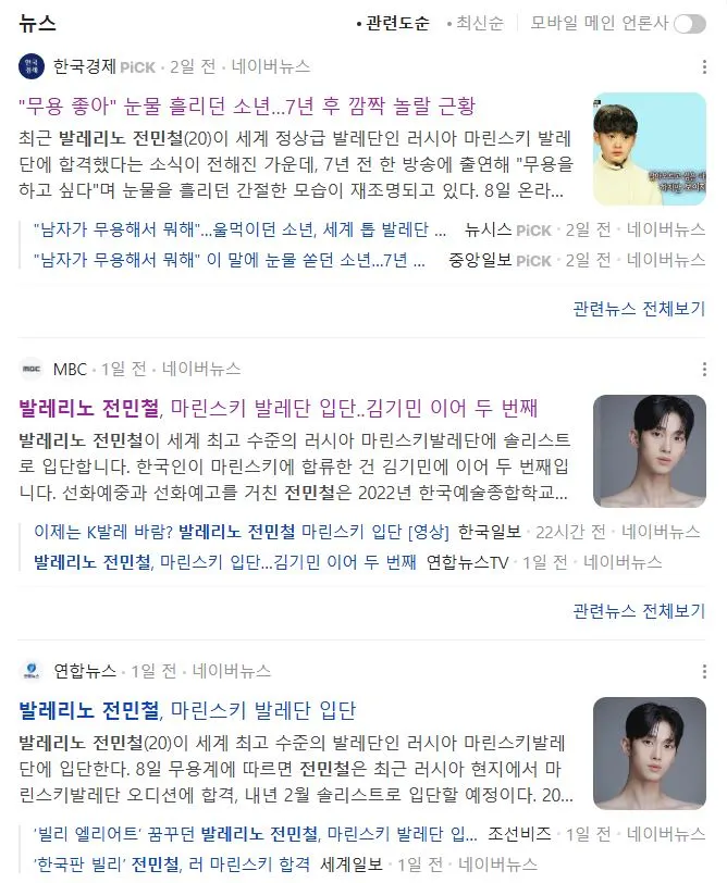 얼마전부터 공연계에 잇달아 경사가 겹치면서 언론이 활짝 웃고 있는데요. 바로 한예종에 재학중인 전민철 학생이 마린스키 발레단의 솔리스트로 입단을 하게 되면서 현재 예술 관련 뉴스와 유튜브 영상에 온통 전민철 발레리노 소식으로 들끓고 있습니다. 발레 무용수로서 세계 최고의 발레단에 입단을 하는 것만으로도 춤에 재능이 뛰어나다고 볼 수 있는데, 솔리스트로 입단을 했다는 것은 거의 특채나 다름없는 파격적인 채용이라고 할 수 있습니다.