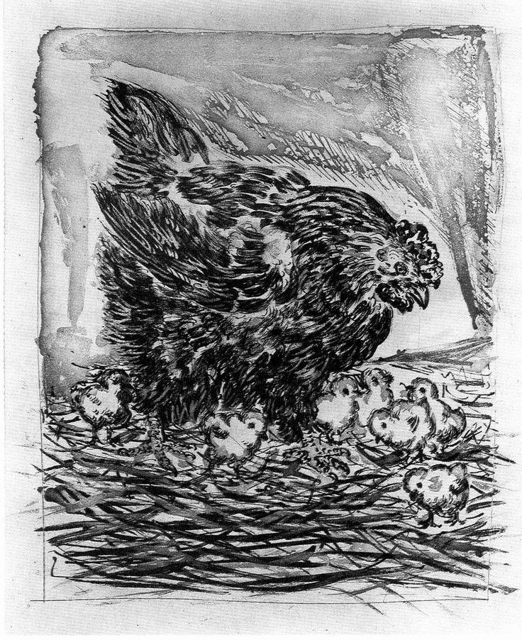 "부인,...(중략) 그 전에 내가 요리를 하나 해드리지요. 우리끼리 파티나 한번 하는 게 어떨까요?" 갈색 수염 아저씨(여우)가 공손하게 말했습니다. "맛있는 오믈렛을 만들어 드리고 싶은데, 실례가 안 된다면 농장 정원에서 채소를 좀 가져다주실 수 있습니까? 깻잎괴 꿀풀, 박하와 양파 두 개 그리고 미나리를 좀 가져다주세요. 고기는 제가 준비하죠, 부인."