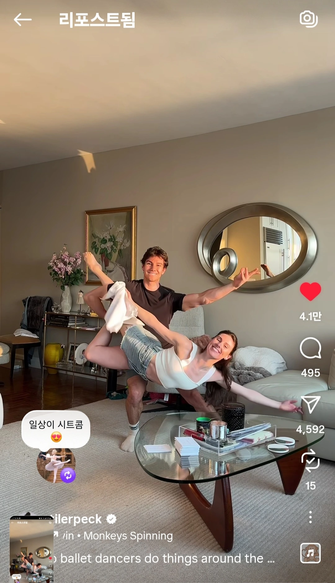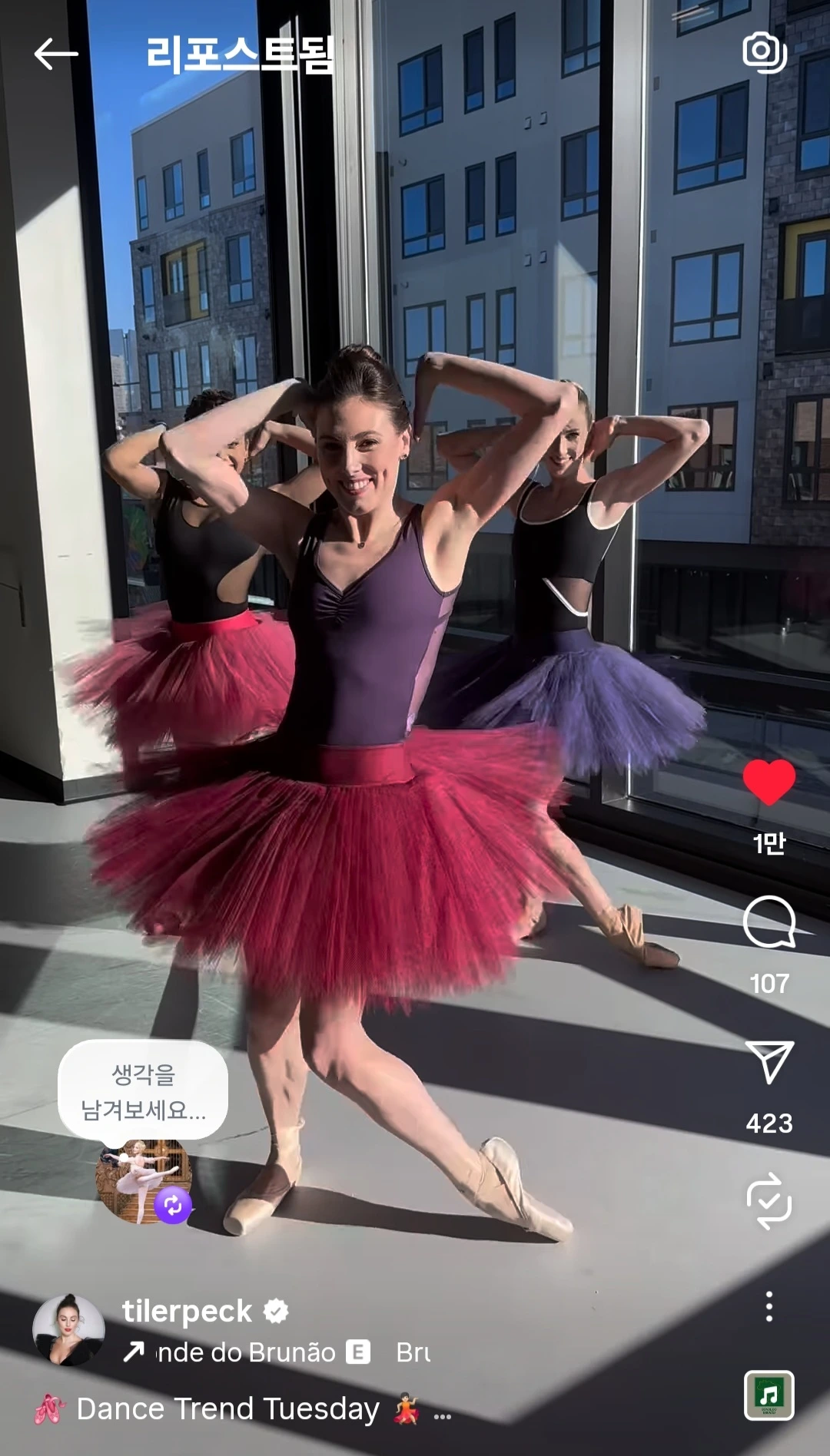 일상이 시트콤인 그녀 옆에만 있으면 주변인들도 시트콤 주인공이 되는 듯 하다. 언제나 내게 웃음을 안겨주는 발레리나.