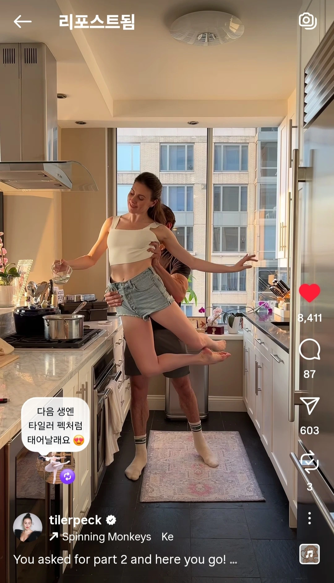현재 타일러 펙은 바쁘다. 춤도 추고, 결혼 준비도 하느라. 예비 신랑은 같은 발레단 수석 무용수인 로만 줄리안 메이어.