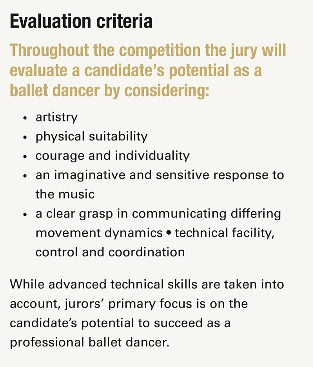 예술성, 발레 체형을 비롯한 신체 조건,