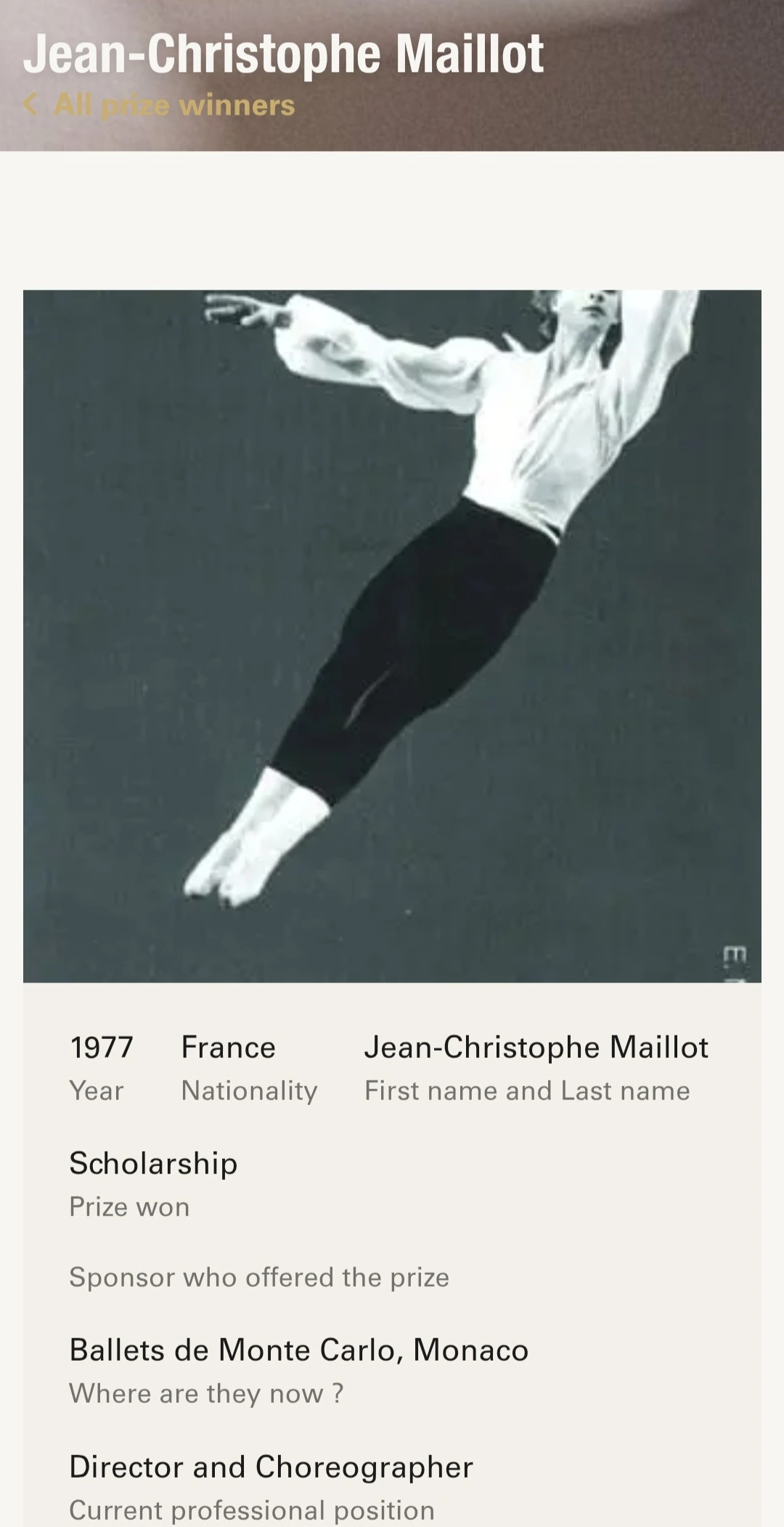 1991년도에 로잔 콩쿠르 무대 위에서 치마를 입고 눈에 보이지 않는 요정을 쫓아다닌 이 남학생은 훗날 세계적인 안무가가 되었다.