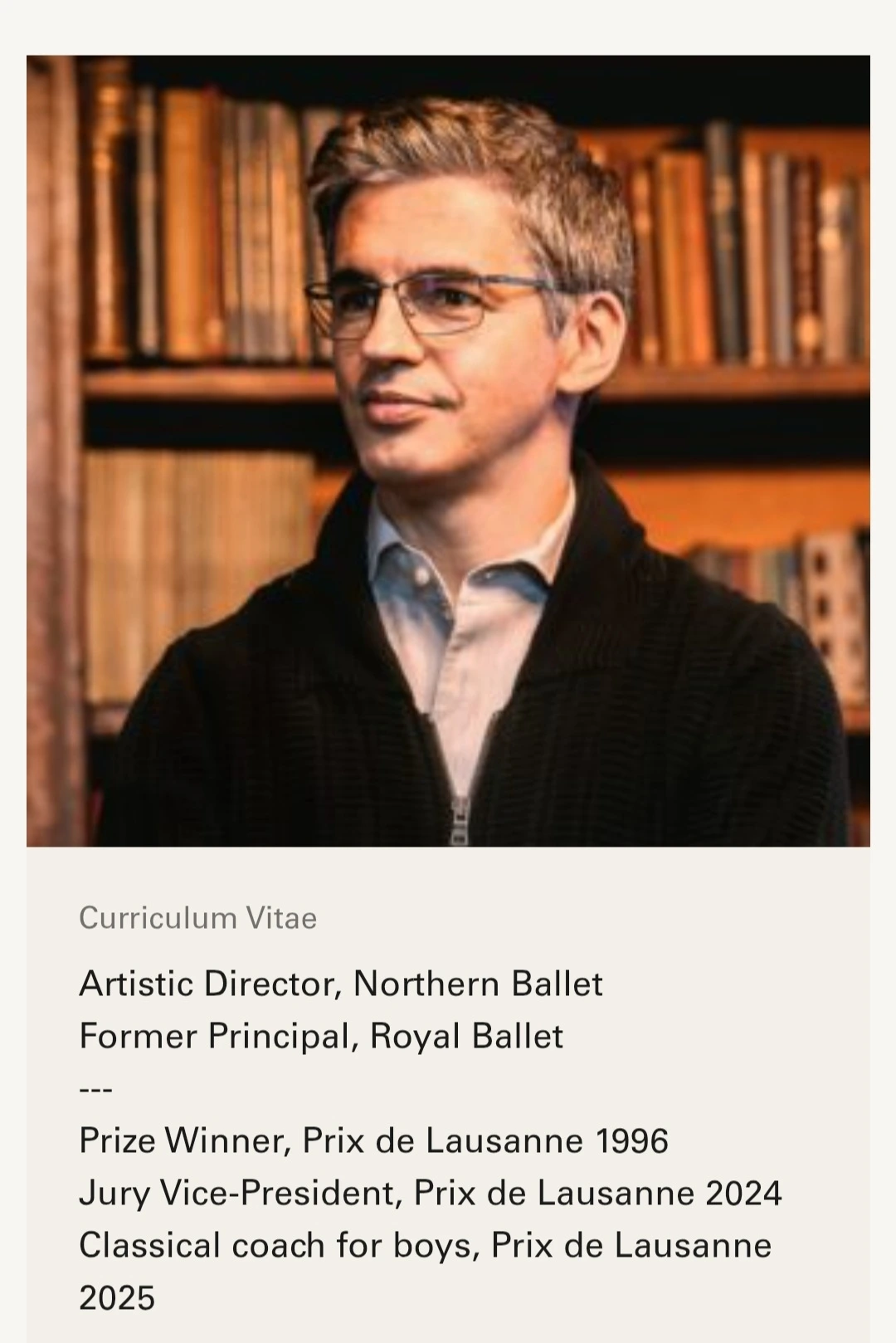 현재 로잔 콩쿠르에서 남학생 그룹 작품 지도하는 발레 코치가 되었다. "페데리코 보넬리"