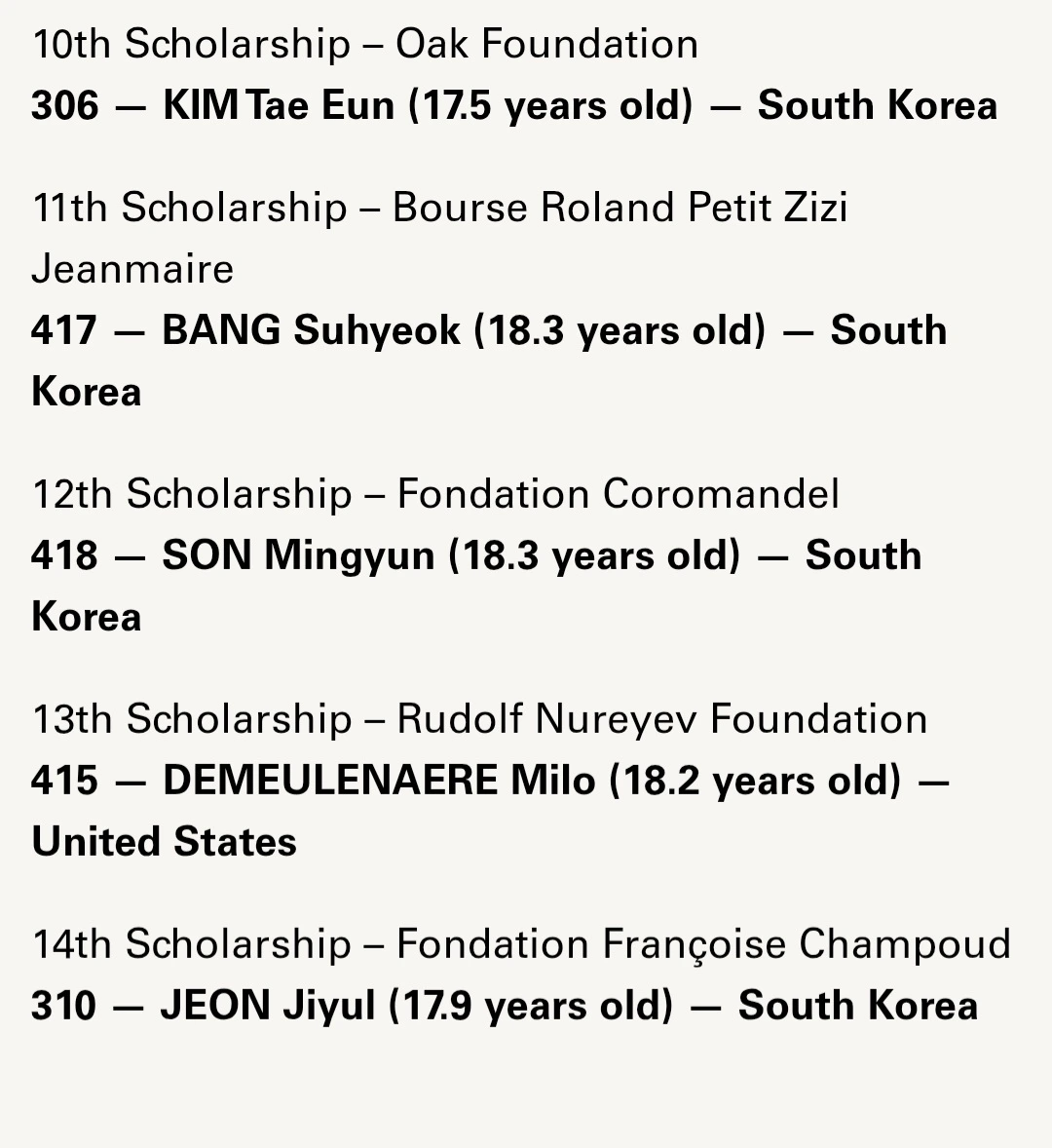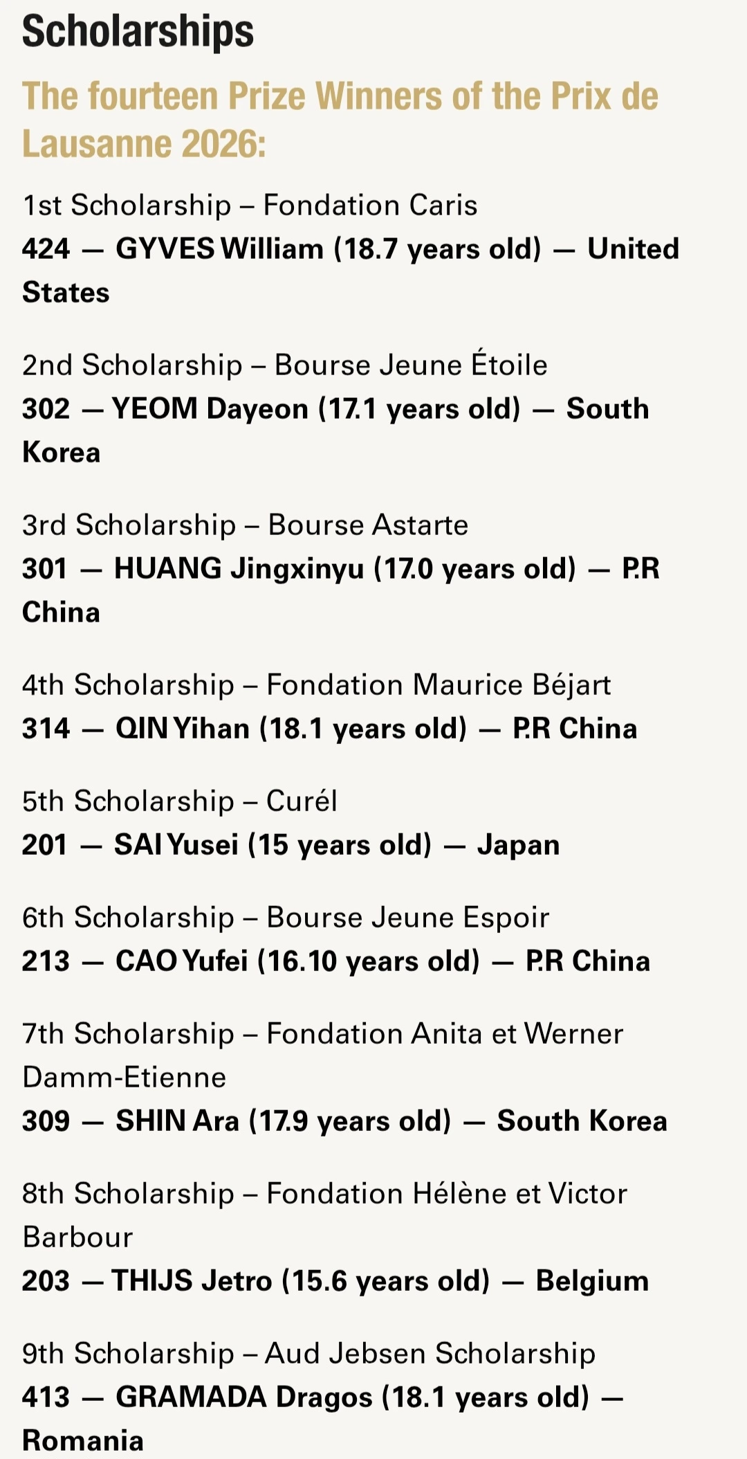로잔 콩쿠르 결승전 한국인 6명 모두 수상