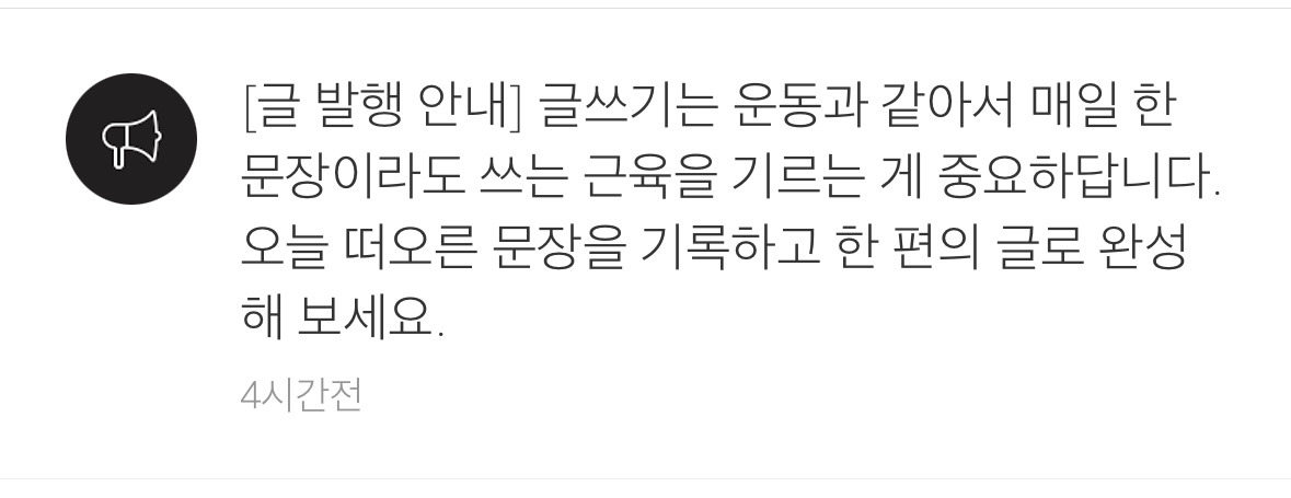 겨우 이 세줄 정도밖에 안 되는 알림이 왜 이렇게 마음이 걸리는지. 그래, 정식연재는 아니어도 꾸준히 일기처럼 이라도 써야지. 마음을 다잡고 오랜만에 글쓰기 버튼을 눌렀다.