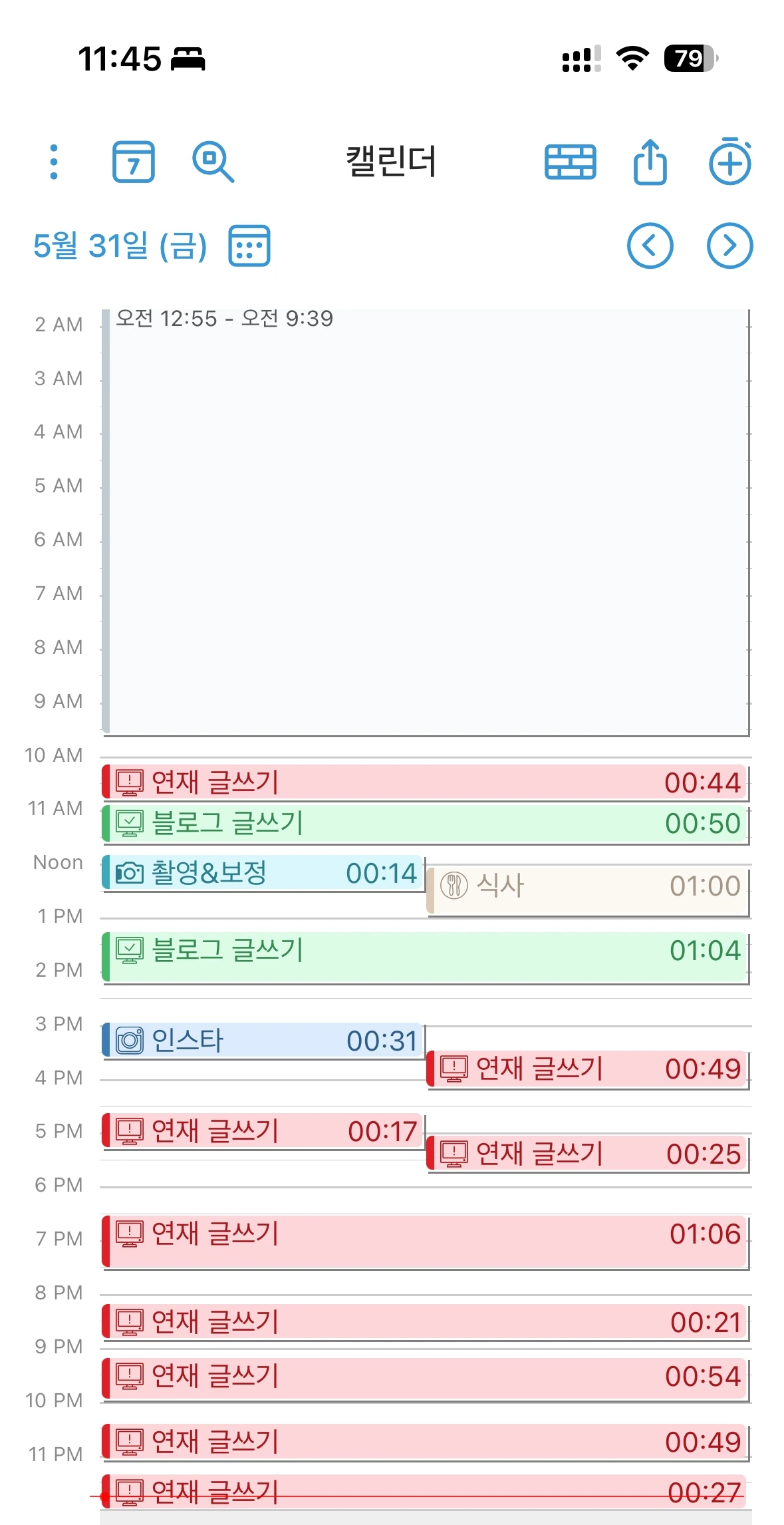 루틴맨의 장기를 발휘하여 매일 적절한 양을 나누어 꾸준하게 작업한다고 해도 마감일이 겹치면 어쩔 수 없이 일이 몰리게 되어있다. 오늘이 바로 그런 날 중 하나인데 아침부터 자정까지 어떻게 하루를 보냈는지 모르겠다. 눈이 너무 아파서 컴퓨터 화면을 야간 모드로 바꾼 거나 겨우 생각난다.