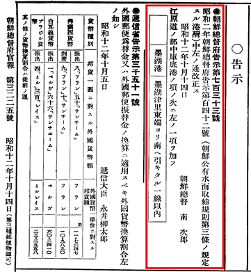 2) 1937년 10월 14일 묵호항 개항 근거 자료, 조선총독부 고시 제733호.