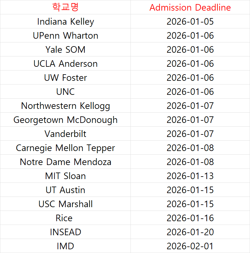 1라운드에 12개, 2라운드에 17개 총 29개. 진짜 이렇게까지 MBA를 많이 지원하는 사람이 있을까? 솔직히 내가 석박사도 아니고 정말 내가 봐도 신기하다. 그런데 한편으로는 그런 생각도 들었다. 친구들 몇 명 말고는 해외에 연고라곤 하나도 없고, 돈도 없어서 역으로 도시를 선호하지 않고, 게다가 학벌에 대해서 엄청나게 높은 기준을 가지고 있지 않다는 사실들이 MBA를 지원하는데 꽤나 장점(?)으로 다가왔다. "지역에 제한받지 않는 삶"이란 추상적인 인생의 목표가 오히려 이렇게 많은 학교를 지원하는 것에 상당한 이점을 가져다줄 줄 줄이야.