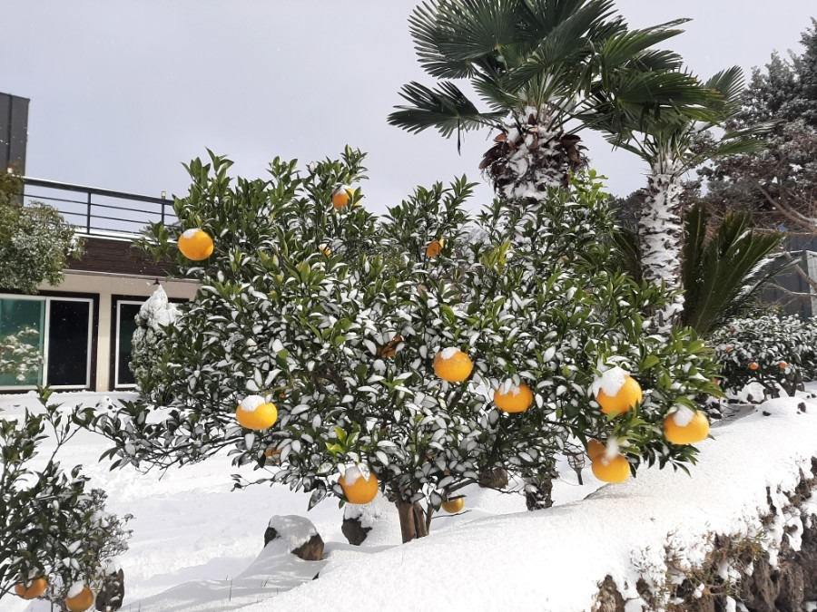 우리 집은 중간산 쪽에 위치하고 있어서 눈이 내리면 운전해서 큰 도로까지 내려가기가 쉽지가 않았다. 그런데 눈이 생각보다 자주 내려서 겁에 질리곤 했다. 제주시에서 보낸 폭설주의보 안전문자가 도착하면 밤새 걱정하기 일쑤였다. 그러나 아침에 잠에서 깨서 정원 가득 쌓인 눈을 보면 얼마나 아름답던지, 아이는 그곳에서 썰매도 타고 눈싸움도 하고 눈사람도 만들며 즐거워했다.