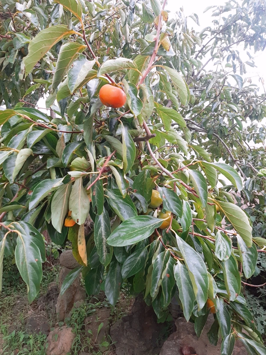작년 10월 하고도 열흘이 지난날. 처음 제주 집에 도착했을 때 감나무에는 감이 열려있지 않았다. 그래서 처음엔 그 나무가 감나무인지도 몰라봤다. 어느 날 문득 정원의 나무들을 살펴보는데 손도, 도구도 닿지 않는 곳에 감이 한두 개가 남아있어 '내가 감나무야' 하고 알려줄 뿐이었다. 대신 옆에 노랗게 익어 가고 있는 귤이나 한라봉에 더 눈길이 갔다. 왜냐하면 나는 이제 막 제주에 살게 된 제주도민이었기 때문이다. 역시 제주 하면 귤이지!