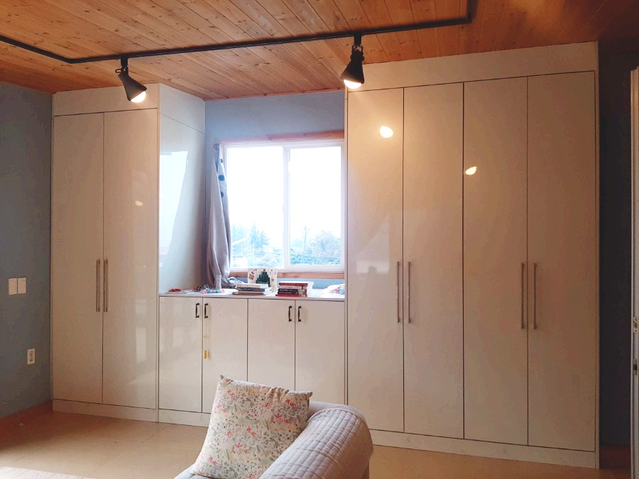 그중에 내가 사용하는 것만 긴 옷장 5칸이다. 이전 집에서는 분명 2칸 정도로 버텼는데 5칸으로 확장되니 재벌 옷장이 부럽지 않다. 당연히 이전과 다르게 옷이 빼곡히, 숨도 못 쉴 정도로 들어찬 옷장이 아니라, 마치 쇼룸처럼 걸려있는 옷장의 모습을 볼 수 있다. 나의 모든 옷들이 서로 부딪히지 않은 채 옷걸이에 하나씩 차곡차곡 컬러별로 걸려있는 모습은 가히 황홀하다. 볼 때마다 뿌듯해지는 것이, 이런 옷 방이 내 소유라면 얼마나 여유 있을까 생각할 때가 한두 번이 아니다.