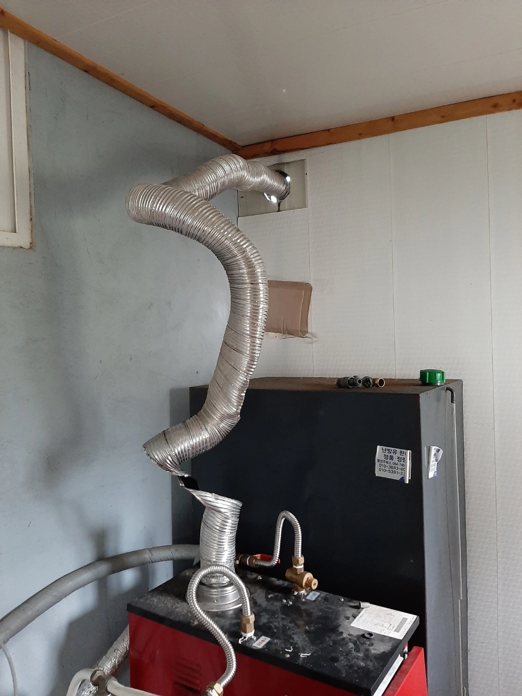 아무튼 그다음 날, 주말인데 다행히도 몇 달 전 보일러 배수관이 터졌을 때 고쳐주셨던 AS 기사분이 와주셔서 빠르게 연통을 교체할 수 있었다. 그때는 단순히 연통만 바꾸면 되는 것이라 생각했었다. 그런데 as기사분이 이 보일러가 됐다 안 됐다 한다며 아마 1~2년 정도 후에는 교체해야 할 것 같다고 말씀하셨다. 1,2년 후면 나는 이 집을 떠날 테니 상관없을 것이라 생각했다. 보일러야! 그때까지만 잘 버텨줘!