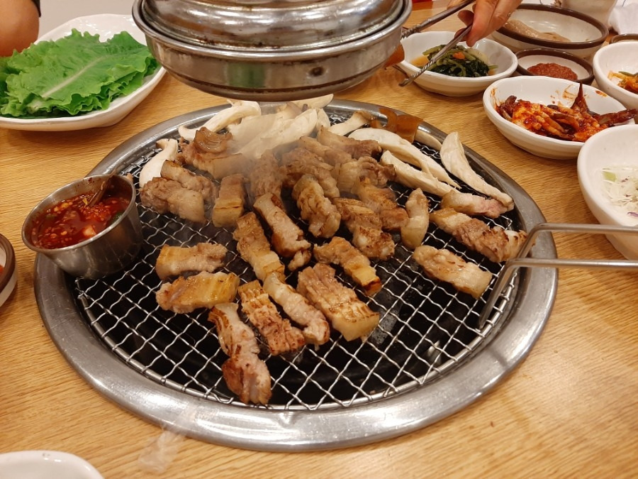 이 흑돼지 집은 정말 오랜만이다. 바야흐로 5년도 전에 제주도 여행의 마지막 만찬을 즐기던 집인데 여전히 그때 그 모습 그대로, 이곳에 건재하다. 적어도 그때는 식사 타임이 아니라 한가했는데 오늘은 저녁시간에 방문했더니 와! 코로나 시국에 웨이팅 하며 흑돼지를 먹어야 한다니! 손님들이 끝도 없이 들어간다. 역시 맛있군. 밖에서 숯불에 구워 먹는 고기 맛은 언제나 옳다. 아이도 먹으며 엄지 척! 다음에 또 오자 맘 먹으며 나왔는데 가격이 조금 부담이다. 매끼 이렇게 먹을 순 없을텐데. 원래 흑돼지는 이렇게 비싼 걸까?