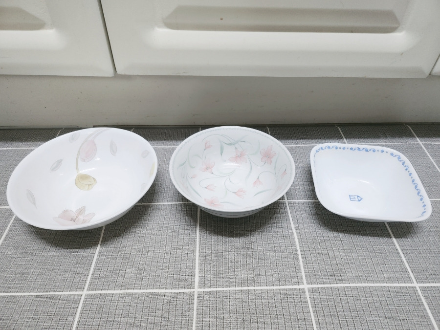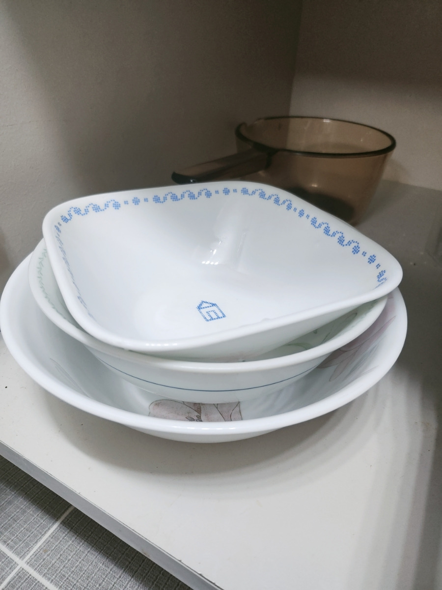 마침 시댁 찬장에 오래되어방치된 것처럼 보이는 같은 디자인 모양의 그릇을 3개를 발견했다. 득템이다!!! 앞으로 그곳에 가락국수, 라면, 떡만둣국 등등등 한 그릇 요리를 담을 수 있게 되었다. 기뻤다! 마치 프랑스 파리의 빈티지 마켓에서 마음에 드는 그릇을 찾은 기분이랄까. 화이트의 적당한 사이즈(가끔은 너무 크면 음식을 끝도 없이 담아, 과하게 먹어야 해서 적당한 사이즈가 좋다) 면기를 득템 하게 되어 얼마나 좋은지 모른다.
