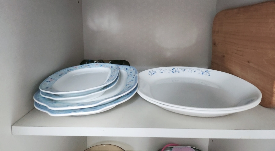 사실 그 유리컵 2개와 아이전용 그릇 2개는 모두 내가 산 것은 아니다. 유리컵 2개는 시댁에서, 아이 그릇 2개는 친정에서 가져온 것이다. 그 밖에도 우리 집에 있는 데일리 식기 세트(밥,국그릇, 접시 여러 장)는 친정에서 가져온 것이고, 넓적한 접시와 조금 컬러풀한 접시는 시댁에서 가져온 것이다. 내가 산 것은 컵, 접시 몇 개와 이전 집에 이사오며 벼르던 2인용 그릇세트 하나일 뿐이다.