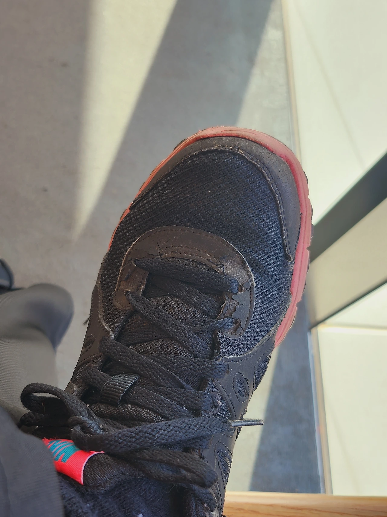 그 신발은 통굽으로 생긴 신발이었는데 바닥의 굽이 바스러지고 있었다. 어떻게 생긴 신발이길래 느낌이 이렇지? 하고 굽을 잡아보았는데 힘없이 떨어지고 말았다. 그러니까 한쪽은 바스러지고 한쪽은 멀쩡한데 전체 분리된 상태. 한쪽은 굽이 있고 반대쪽은 없으니 발이 절룩거릴 수밖에... 그래도 집에서 가까워 다행이었다. 다시 집으로 돌아가 갈아 신으면 되었으니까.