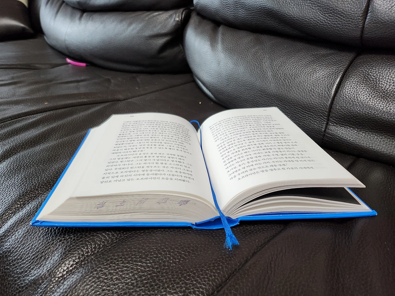 그러던 지난 크리스마스 연휴에 아이가 아파서 3일을 결석하고 이어서 크리스마스 연휴가 3일 그렇게 총 6일을 붙어 있을 일이 있었다. 24시간을 6일 동안 붙어있었더니 저절로 아이 앞에서 책을 볼 수밖에 없었다(보통 아이가 학교에 간 동안, 잠든 후에 책을 읽고는 한다) 아이도 나도 감기가 크게 걸려 아팠기 때문에 크게 다른 활동을 할 수가 없었다. 고작 할 수 있는 것이 밥 먹고 약을 먹은 후 침대에 누워있는 것이 최선이었기 때문이다.