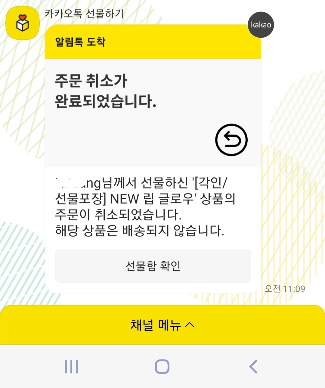 올해의 생일선물은 오프라인을 제외하고(어쩔 수 없이 받았다) 온라인은 모두 거절하기 기능을 이용했다. 이런 기능이 있는지 미리 알았더라면 진작 이용했을 텐데! 다행히도 취소도 바로 알 수 있어 좋았다.